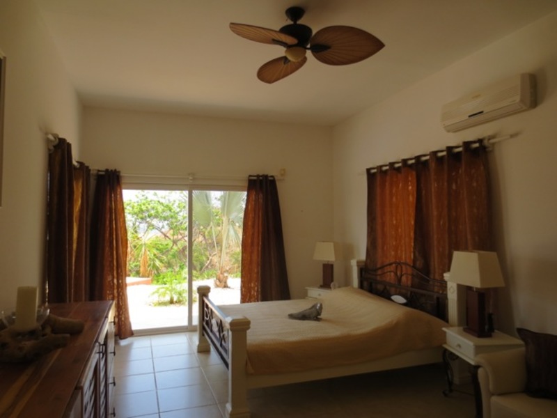 It is a brand new three bedroom and three baths. It has the highest quality finishings throughout. It boasts an enormous swimming pool that looks out to the ocean in the Nicoya Gulf and the Central mountain range. There is an outdoor ranch that is fully furnished and perfect for enjoying the ocean views with a morning cup of coffee. The covered porch boasts a pool side full living room area. Solar panels help to offset electrical costs in this gated community home.