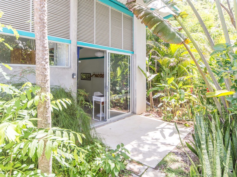The Master suite is made private by plantings, with its own patio area and amazing views of the ocean and reserve below. Mornings can be spent observing the reefs, bay and nearby birds from its new, Super-King hanging teak bed.