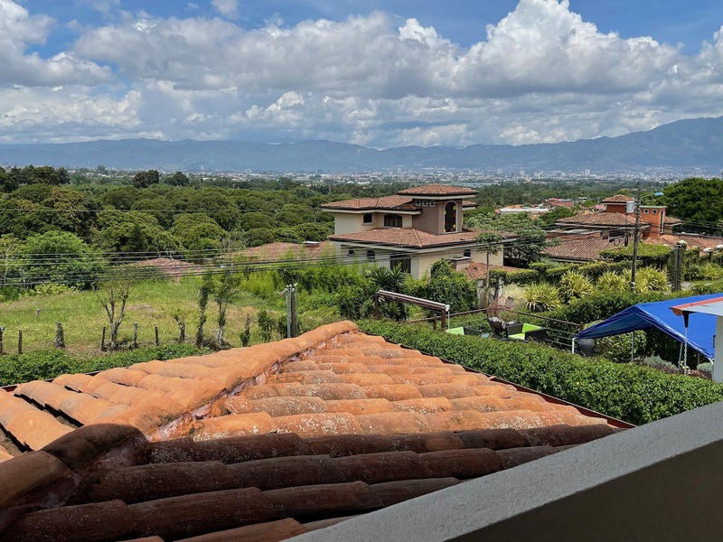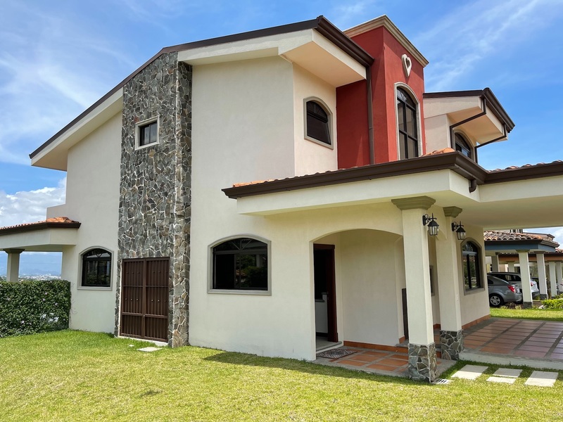 Casa en Venta en Residencial con Espectaculares Vistas a la Ciudad El residencial tiene una vista espectacular hacia la ciudad del valle central y está rodeado de montañas, es un ambiente fresco y verde. Tiene muy buena ubicación a tan sólo 15 minutos del centro de San José y 10 minutos del centro de Heredia. Es un residencial de tan solo 10 casas, con acceso por casetilla de seguridad y portón eléctrico. Tiene un amplio parque para niños. -2 pisos. -Lote:672 m2. -Construcción: 240 m2. -Garaje 2 bajo techo + 4 al frente. -Casa separada de las otras. -Primera planta: Amplia sala comedor, cocina con muebles de cocina en madera y granito, con mucha iluminación y ventilación. 1 habitación ideal para oficina o adultos mayores. 1 baño completo, cuarto de lavado, 2 bodegas. Amplia terraza con vista al jardín y zona verde. -Segunda planta: Salón social, la habitación principal con walk in closet, bano con doble lavado y balcón con espectacular vista. Además 2 habitaciones con closet y baño compartido.