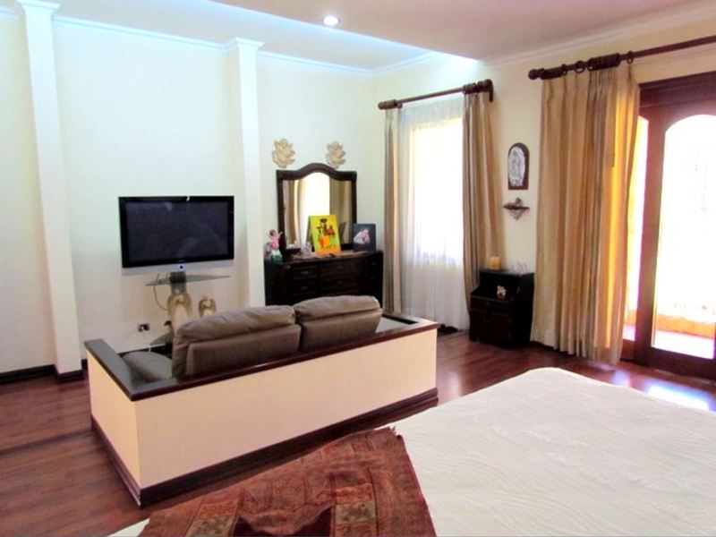 Wonderful house in gated community in Santa Ana. The house has a floor area of 450 m2 and a lot area of 2,227m2. It also has 4 spacious bedrooms including the master bedroom with a jacuzzi and walk-in closet; one secondary bedroom with its own bath and closet; the other two secondary bedrooms with closets and a full bathroom to share. There's a big kitchen and dining room, as well as a great covered terrace with a bar and BBQ area. The house is fully landscaped with a great backyard and gardens and a nice rancho where you can enjoy the outdoors. Amenities include a private fitness center, game room, an intelligent system controlling lights, air conditioning, alarm, and cameras; A/C; 24 hour security; storage rooms and more. Maravillosa casa en condominio en Santa Ana. La casa tiene una superficie construida de 450 m2 y un lote de 2.227 m2. Cuenta con 4 amplios dormitorios, incluyendo el dormitorio principal con jacuzzi y walk-in closet, un dormitorio secundario con su propio baño y closet, las otras dos habitaciones secundarias con closet y un baño completo a compartir. Tiene una gran cocina y comedor, así como una gran terraza cubierta con bar y zona de barbacoa. La casa está totalmente ajardinado con un gran patio y un bonito rancho donde se puede disfrutar del aire libre. La casa también tiene un gym privado; sala de juegos; un sistema inteligente de control de luces, aire acondicionado, alarma y cámaras; A/C; seguridad las 24 horas; bodegas y más.
