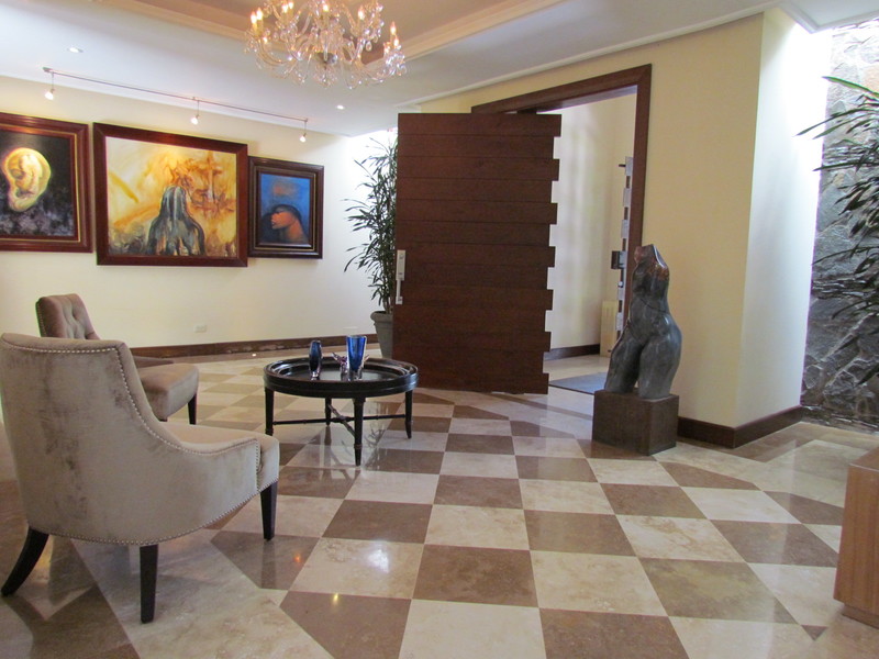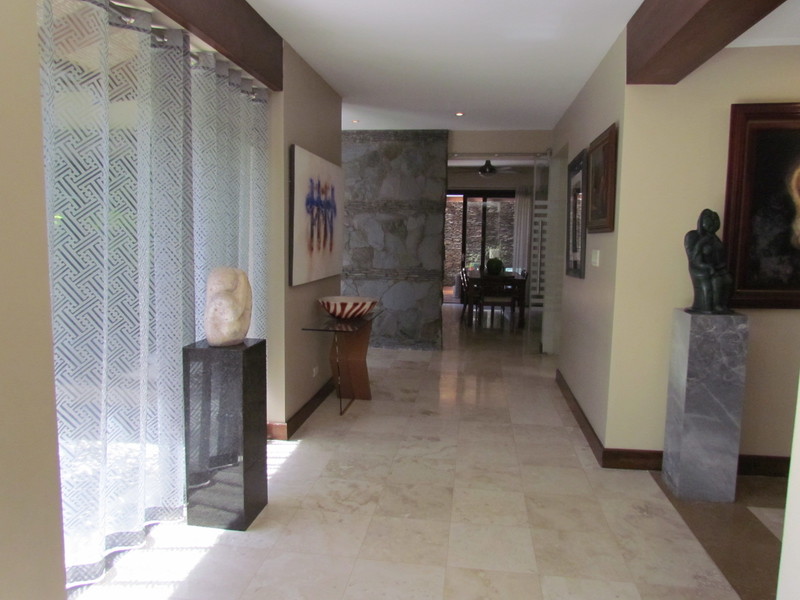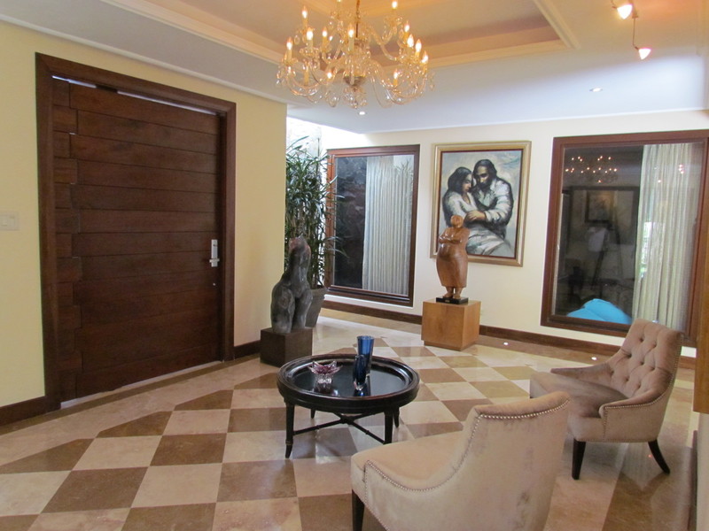 This 9,365 sq ft (870 m2) Estate is mainly on one level and is characterized by details and marble and wood floors (almendro), glass walls and doors, natural light and spacefull garden. It sits on a flat 27,560 sq ft (2,560 m2) lot on the most private and exclusive area of this fine gated community.
