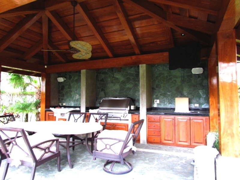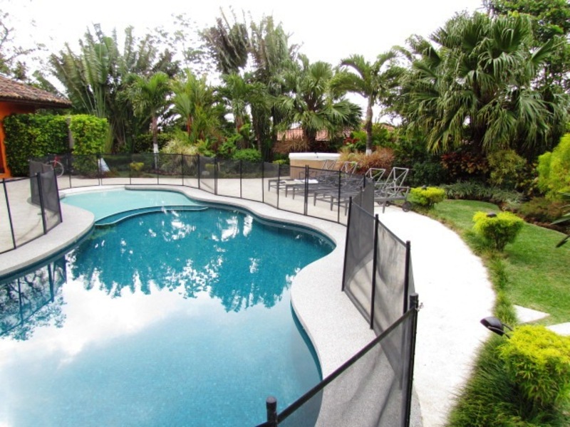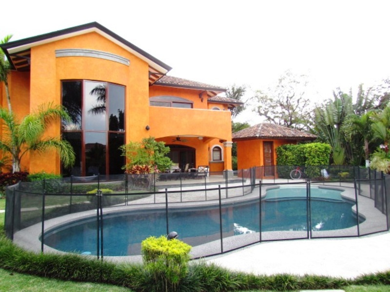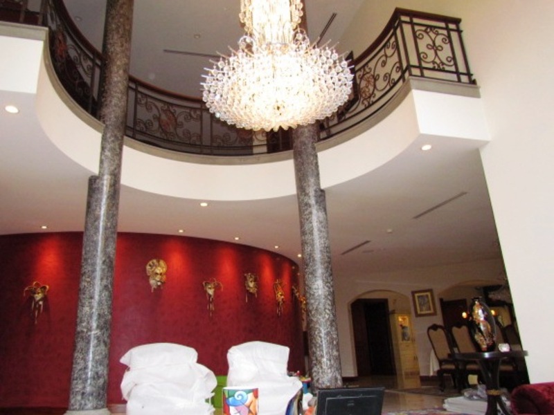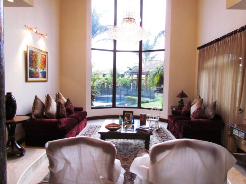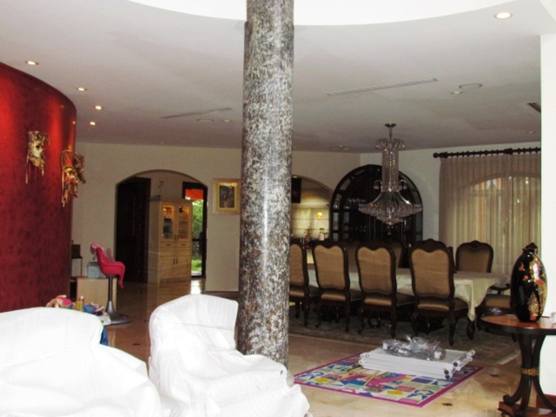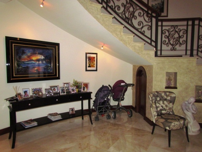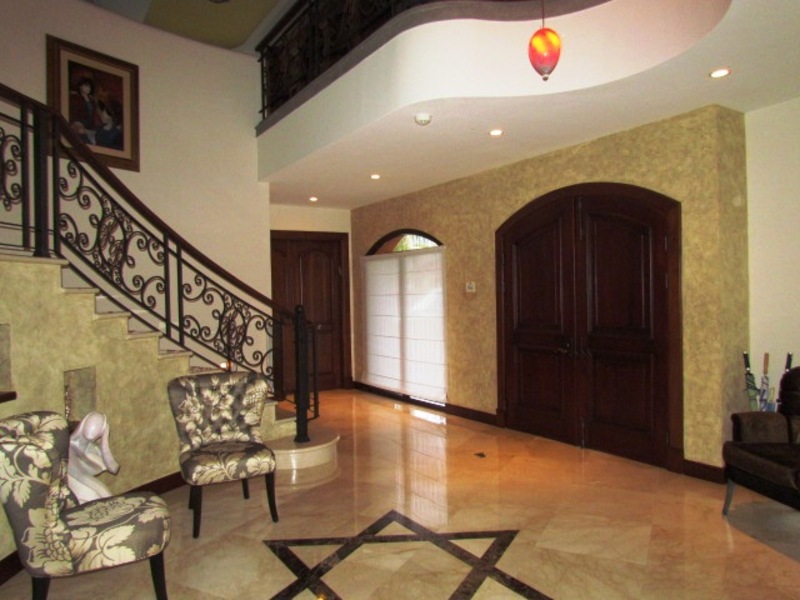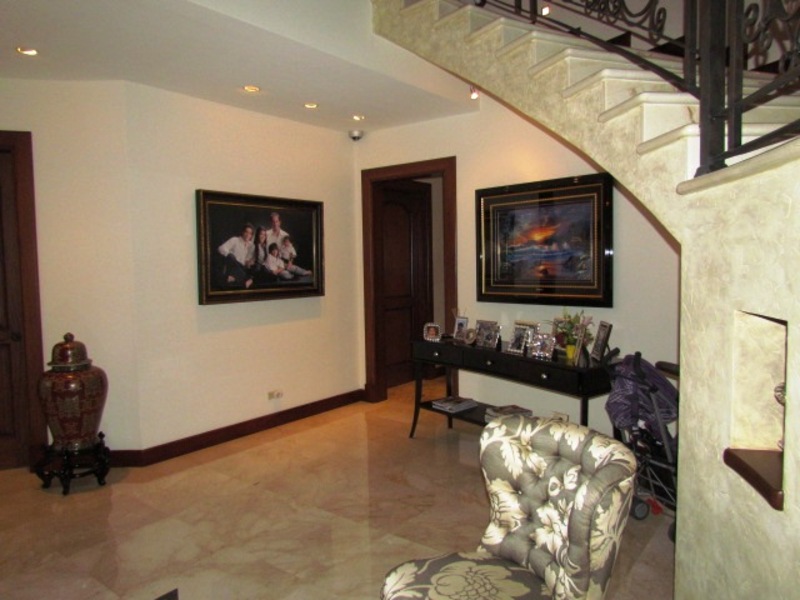 Home features: This family home is sitting in a 1,830 sq. mts. Lot and has over 650 sq. mts. Of living space; Open floor plan with 28 ft. ceilings; 4 oversized bedrooms, 4 full bathrooms, 2 half bathrooms; Oversized maid’s quarters (can sleep 3); Three car garage; 4 outdoor terraces; 6 separate air conditioning zones for the entire house; Lush and well decorated garden; Heated (gas) pool and Jacuzzi with Piedra Coralina deck; Rancho with TV, high end barbecue and refrigerator; Outdoor pool and rancho bathroom. All concrete construction; Marble, Travertine stone & hard wood (almendro) finishes and lots of features and details throughout. The lower level is where you will find a large kitchen with granite counter top, stainless steel appliances, pantry, a formal dining room, a living room, an office as well as a spacious terrace leading out to the outdoors, pool, slush landscape and fully equipped rancho. Also, full maid's chambers; laundry room and a three-car garage. All floors downstairs are marble except the kitchen, which is travertine. The upper level has been designed to appreciate the remarkable view of the mountains that the house offers and provides two balconies. The large master bedroom includes Jacuzzi and walk-in closet. In addition, on this level there are three secondary oversized bedrooms, two bathrooms, and a TV room. Upstairs floors are all almendro (hard wood). Other Features: 2 large projection TVs with hidden roll down screens, alarm system with motion detectors, 12 cameras situated in and outside the house with recording system, phone recording system, multi line phone system, 2 separate dish network connections and dishes, battery back up system for 24 hours of electricity during black outs, full in ground sprinkler system full outdoor night lighting throughout the entire property (with timer system) numerous special painting details, built in bookcases, lighting details, etc. And of course this outstanding property benefits from being inside a secure gated community not only for being guarded 24/7 but also for having large and beautiful common areas to socialize and relax with your friends and family. The development provides access to the Rancho, basketball court, soccer court, kids play ground and green areas for its residents.