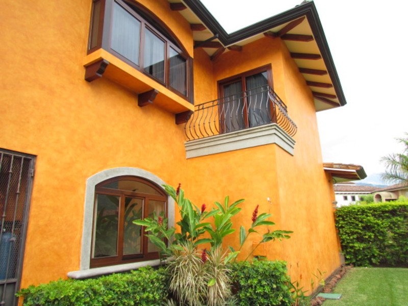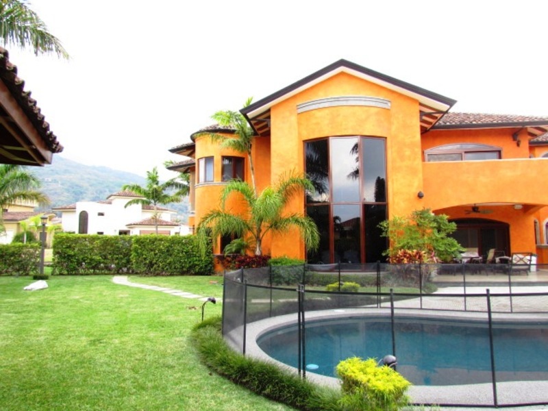 Lujosa casa grande e inteligente en residencial cerrado en Santa Ana para venta: Construida en un estilo mediterráneo y con los mejores materiales, esta casa también es la propiedad perfecta si le gusta socializar con su familia y amigos. Esta casa tiene todo el lujo y la planificación necesaria. Desde la cocina enorme y bien distribuida, hasta los dormitorios de gran tamaño. También tiene sala de T/V y muchos jardines. Esta casa ha sido diseñada con sistema de luces inteligentes de control, aire acondicionado, alarma, cámaras de televisión (cable, antena, DVDs y almacenamiento de disco duro). Características de la casa: Esta casa tiene 1.830 m² de lote y cuenta con más de 650 metros cuadrados de construcción. Techos de 28 pies, 4 dormitorios de gran tamaño, 4 baños completos, 2 medios baños, cuarto de servicio de gran tamaño (pueden dormir 3), garaje para tres coches, 4 terrazas al aire libre, 6 aires acondicionados de forma independiente para la totalidad de la casa, jardín exuberante y bien decorado, la piscina climatizada (gas) y jacuzzi con deck de Piedra Coralina, Rancho con TV, piscina al aire libre y baño en el rancho. Toda la construcción de hormigón; acabados de lujo y un montón de características y detalles en mármol, travertino y madera dura (almendro). El nivel inferior es donde se encuentra una gran cocina con encimera de granito, electrodomésticos de acero inoxidable, despensa, un comedor, un salón, una oficina y una amplia terraza con salida al exterior. Todos los pisos de la planta baja son de mármol, excepto la cocina, que es travertino. El nivel superior se ha diseñado para apreciar la extraordinaria vista de las montañas que la casa ofrece y proporciona de dos balcones. El dormitorio principal cuenta con jacuzzi y walk- in closet. Además, en esta planta hay tres dormitorios secundarios de gran tamaño, dos baños y una sala de TV. Pisos de arriba están en almendro (madera dura).