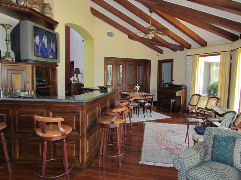 The house evolves on only one floor. An ample entrance lobby with a full guest bathroom. The living areas are very large with really high ceilings ideal for social gatherings. The living and dining rooms are connected to a large social room and then the large garden. Three bedrooms, each one with its own bathroom; The master bedroom with large walk-in closet and an exit to the great garden in the back of the house; An ample office that can serve as a guest bedroom; Nice and airy kitchen with breakfast area, pantry and lots cabinetry; Laundry room, maid´s quarters, storage area, a garage for 3 cars and enough parking area for many more on driveway.