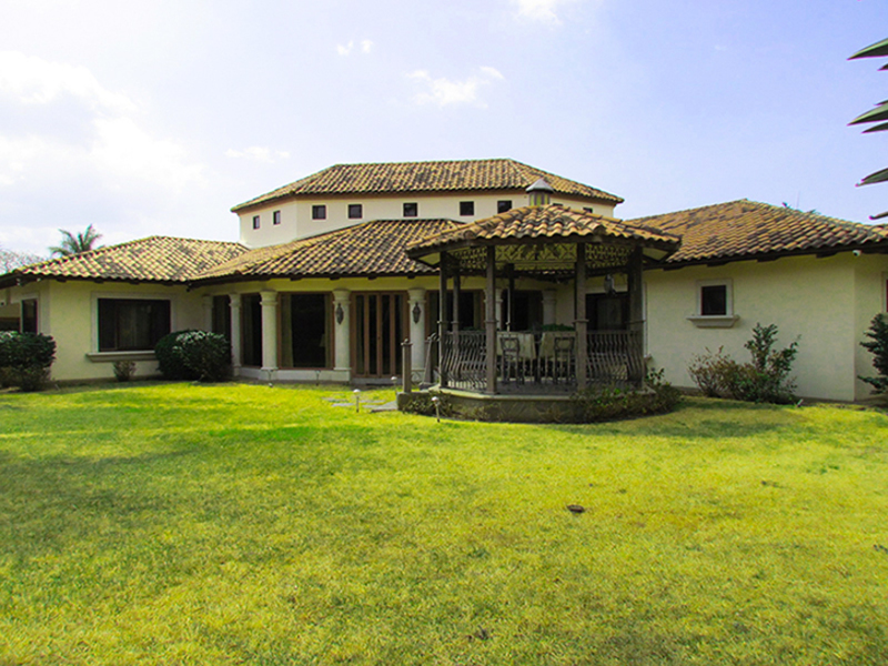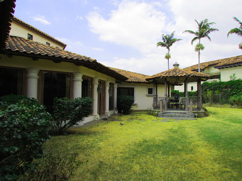 Esta hermosa casa colonial se desarrolla en una sola planta. Entrada del vestíbulo amplio con baño de visitas completo. Las salas y comedor son muy grandes, con techos altos ideales para reuniones sociales. Las salas de estar y el comedor están conectados a una gran sala social y luego el gran jardín con su gazebo y preciosa vegetación. Tres dormitorios cada uno con su propio cuarto de baño. El dormitorio principal con gran vestidor y salida al gran jardín en la parte trasera de la casa. Oficina amplia que puede servir como un dormitorio de invitados. Agradable cocina bien ventilada con desayunador, despensa y muchos gabinetes. Cuarto de lavado, cuarto y baño de servicio, área de bodega, un garaje para 3 vehículos y parqueo suficiente para muchos más en el driveway.
