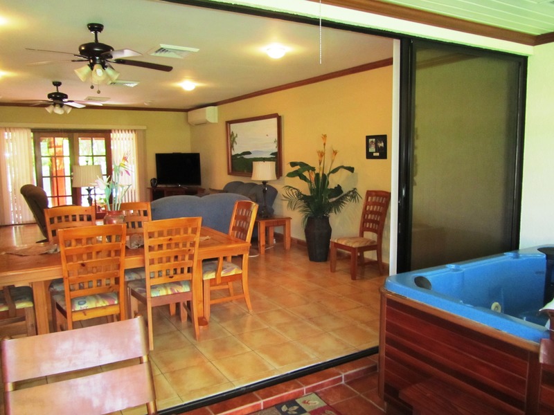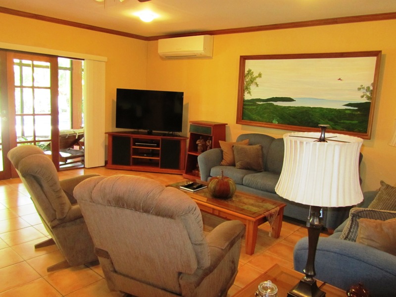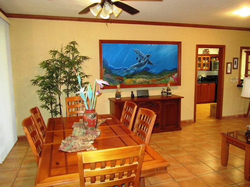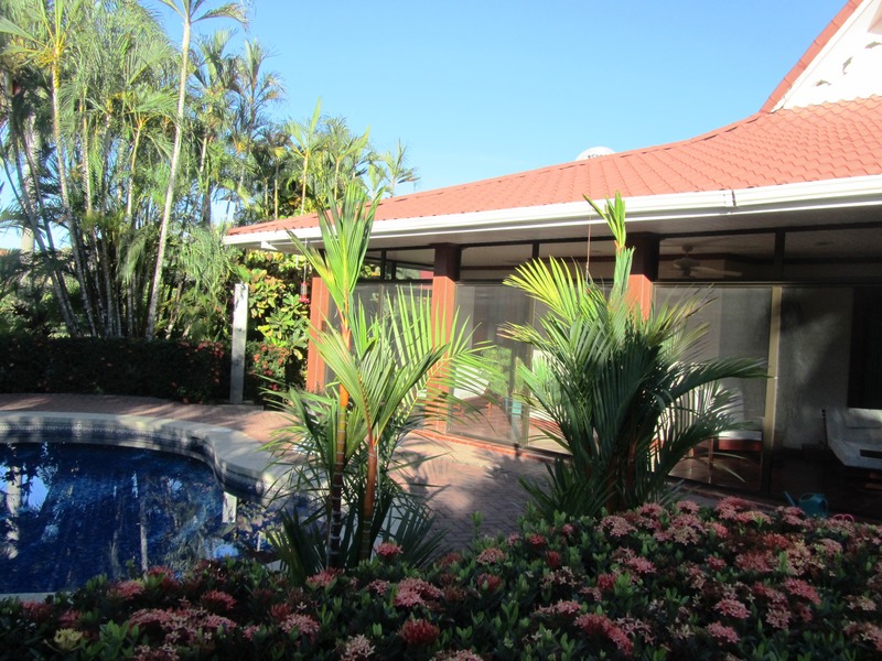 This home has been meticulously remodeled and upgraded and each bedroom has its own bath and air conditioner. Located in a gated beach front community, and titled to the 50 meter zone, this luxurious home is literally across the street from the beach and a short walk to the lovely golf. The relaxing private swimming pool is nestled among the manicured tropical gardens that surround the home. The large living room and family room open to the modern kitchen that is equipped with state of the art appliances. The three guest bedrooms are conveniently located for privacy and can be used for office space or, in this case, as a personal gym as well. The large Master Bedroom opens to the gardens and includes a sizeable office space as well. The owner installed 22 solar panels that provide the power for the house, including the air conditioning and swimming pool, and, with anarrangement with the national power company that coll ects the power, this home’s monthly bill is only around $15. Besides the living room and swimming pool area, thereare two screened-in patios for enjoying the tropical climate. In the driveway, a secure storage area with steel doors is large enough for a golf cart or personal storage. The amazing thing is that the house is being sold with all the furnishings, household items and equipment This is the best of tropical living, in privacy and security, near the beach, golf links and country club, all eady and waiting for you on day one. This home is near to the necessities of modern living but a world away in a setting that is as close to natural paradise as can be found.