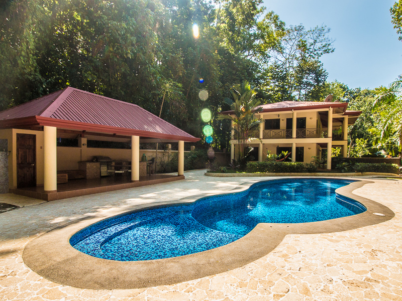 Just of the coastal highway the exquisite house is perched within a jungle atmosphere just like out of the story book of Tarzan. With monkeys making daily visits and several different species of birds, this is natural wonderland that every one will love. The main house features 4 bedrooms, and a guest casita includes it own bedroom suite. Three of the bedrooms are located on the 2nd floor of the house overlooking the jungle and pool area. The house was built in 2008 and includes a swimming pool big enough to swim laps with an additional small pool section for the kids. A two car garage, bodega, large covered yoga or workout studio, game room, and BBQ area for entertaining, all make this house a must see if looking for a second home or place to rest your hat.