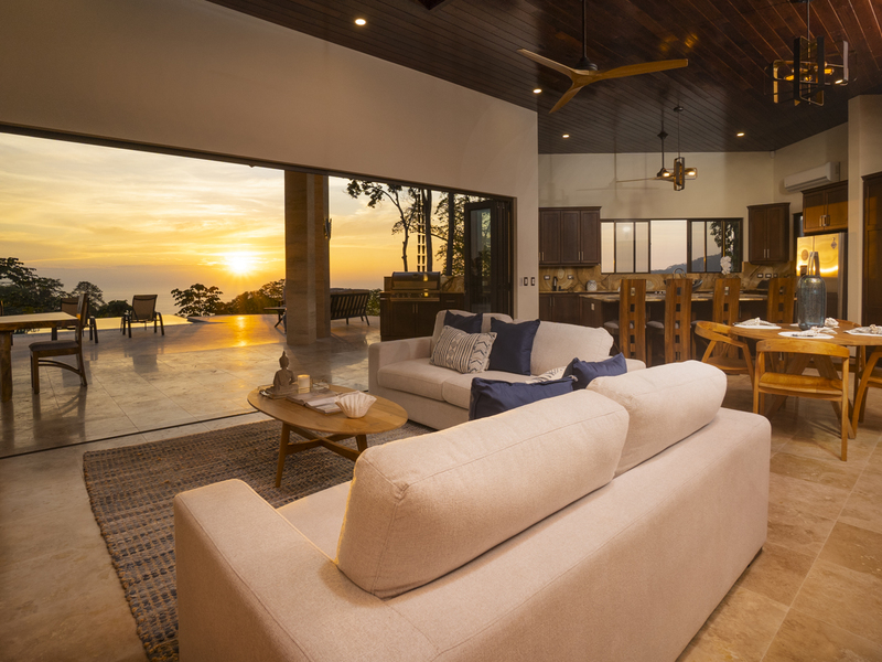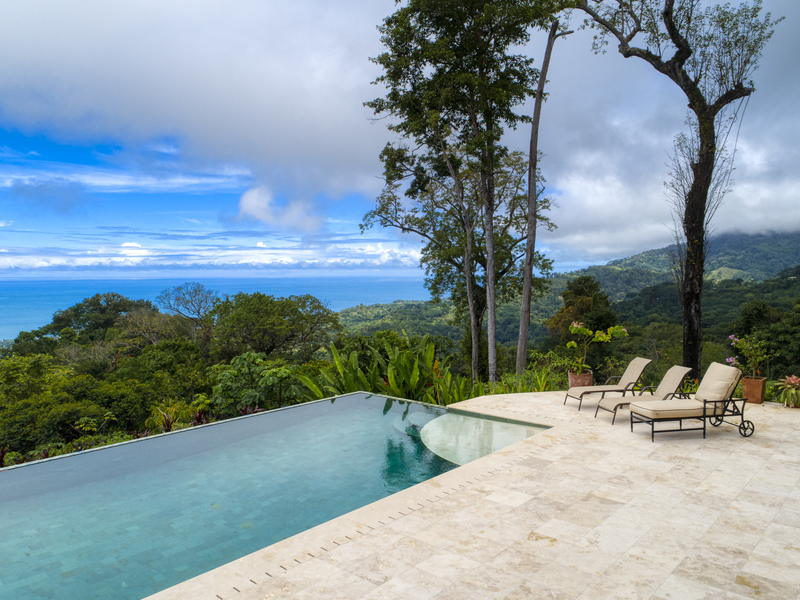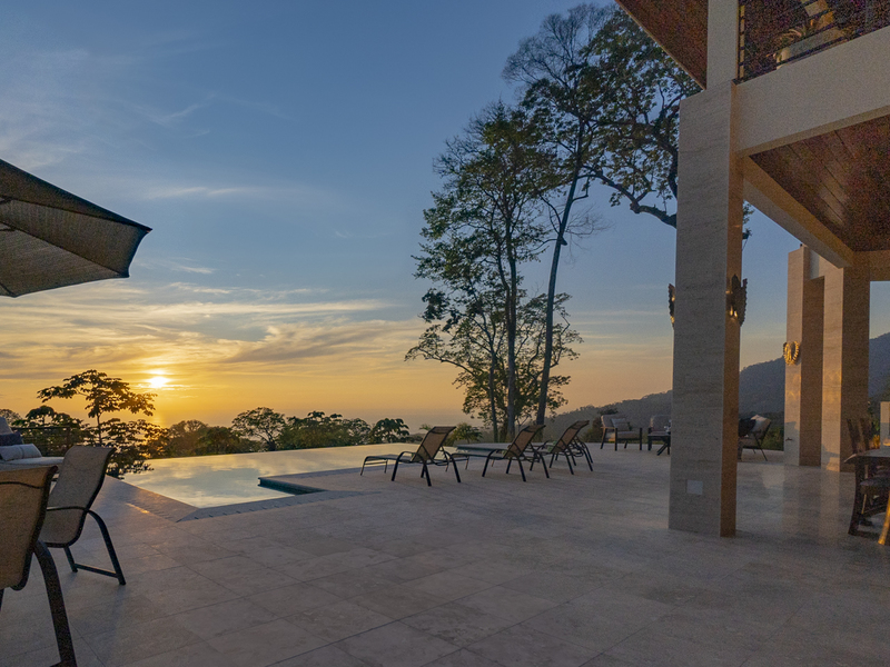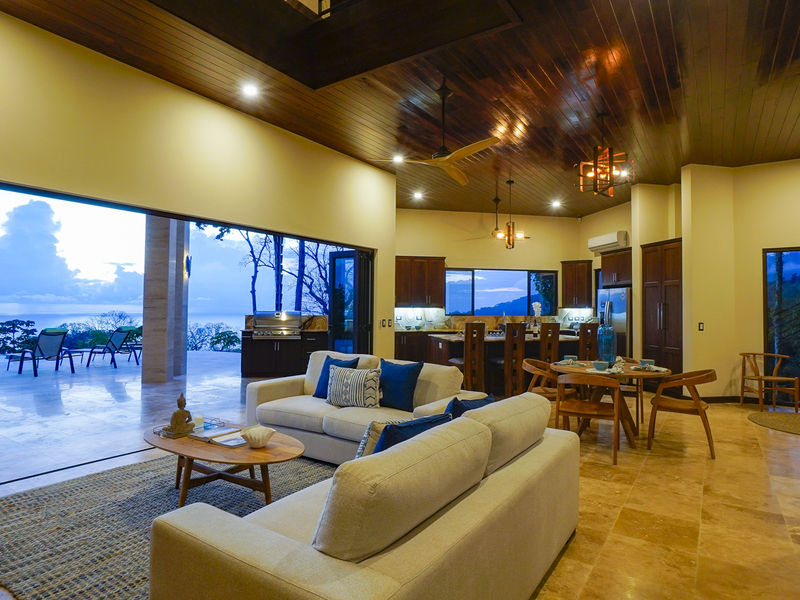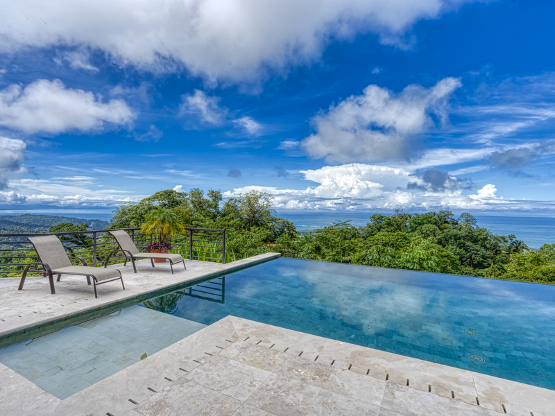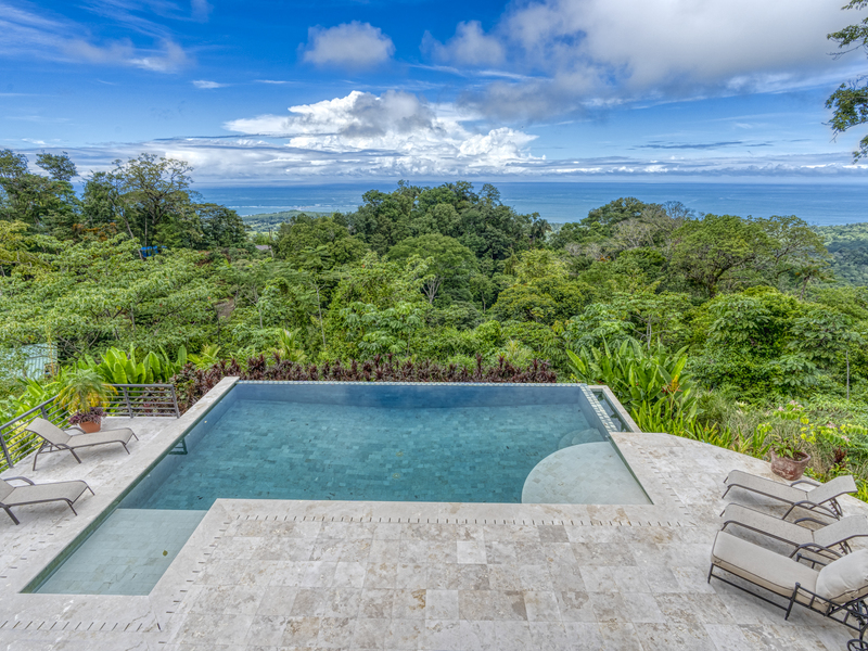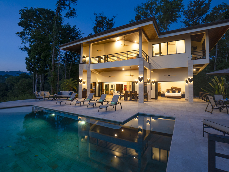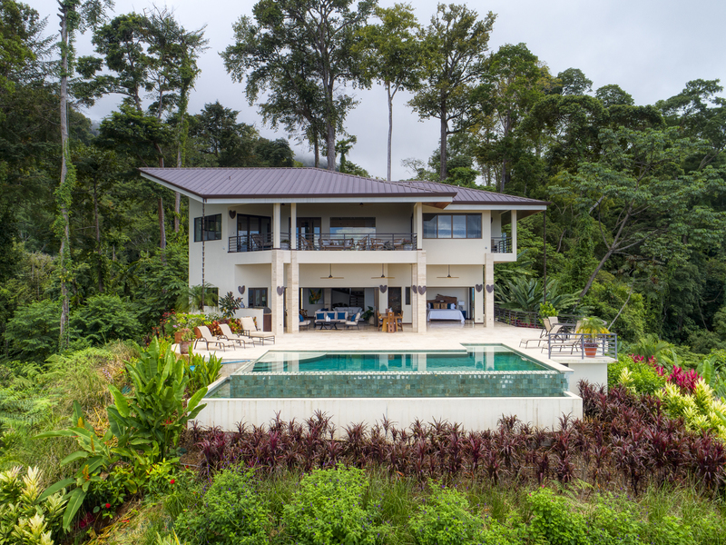 This luxurious 6,243 square foot home offers some of the best views in Southern Costa Rica. From your outdoor terrace, you can see lush jungle views, beautiful ocean views, and views of the whales playing and mating. This high-end luxury home includes a large patio with a pool and spa, exotic stone kitchen countertops, and high-quality wooden furniture. This home is perfect for your next family home or if you’re looking for a vacation rental.