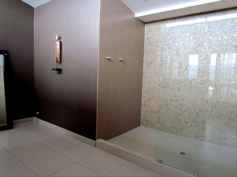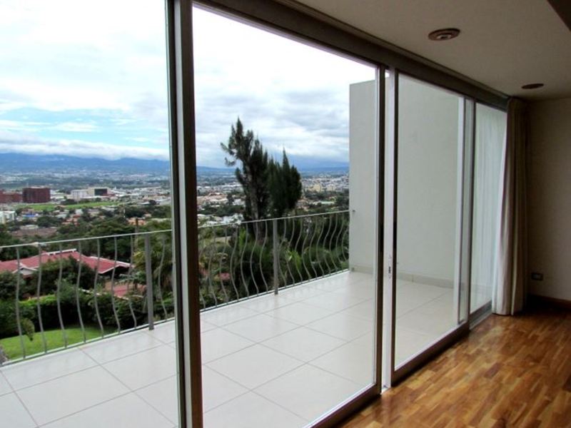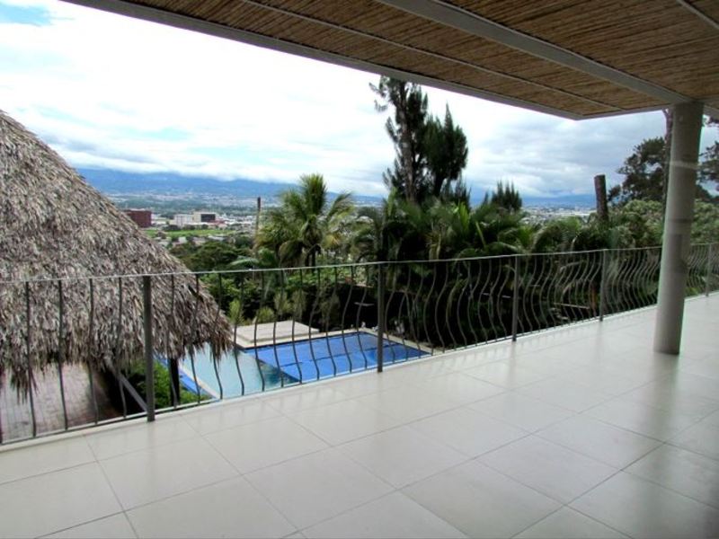 Amazing, 3-story, modern house for rent with great view in Escazú. If you want to live in one of the best houses in Escazú, this is your place. This house has it all. It has a lot size of 1,200 sq meters and 636 sq meters of construction. It includes 4 bedrooms, each with its own bathroom, and the masters bedroom has a big and amazing bathroom, with a jacuzzi where you can enjoy the wonderful view, and a great shower. From almost every room of the house, you can enjoy the view. It also has its own elevator and a great fireplace. The second and third floor have wide balconies, one accessed through the kitchen and living room and the other one accessible through the masters bedroom. Other great features this house have is a big pool which includes a lap pool, nice and spacious green areas, and a big rancho with a BBQ area where you can enjoy with your family. It also includes a storage room, maid's bedroom and bathroom, alarm system and guard house. Come and enjoy this amazing house!