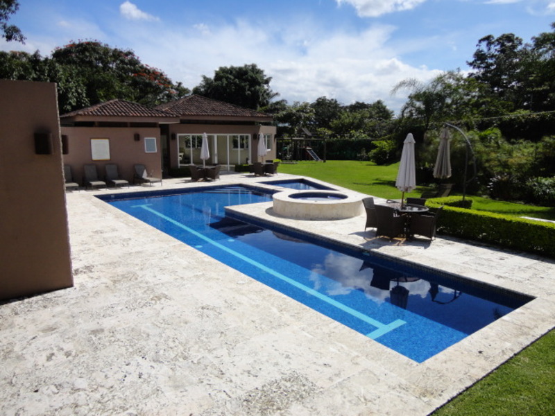 What a beautiful single family home in Escazu for Sale. It is a modern and great house. Excellent location, close to schools, supermarkets, banks, shopping centers and residential areas and to the main roads. Marble floor on first level. In this same level It has a spacious dining room and a cozy living room with access to a large covered terrace and garden; TV room / Studio or 5th bedroom; and a full bathroom; The house has a large kitchen with granite countertops, a pantry and breakfast area; Laundry area and a big maid's bedroom with a full bathroom. The second level is all wooden floor. It has the master bedroom with a large walk-in closet and a nice bathroom. 3 other bedrooms, each with a bathroom and walking closet. A large study or informal living/TV room. It has two central air conditioning units: one for the master bedroom and one for the other 3 bedrooms. Four car garage, storage area, etc. The condo has a clubhouse, heated pool - Jacuzzi, visitor's parking and 24 hour security.... A wonderful home for a family to grow and enjoy!
