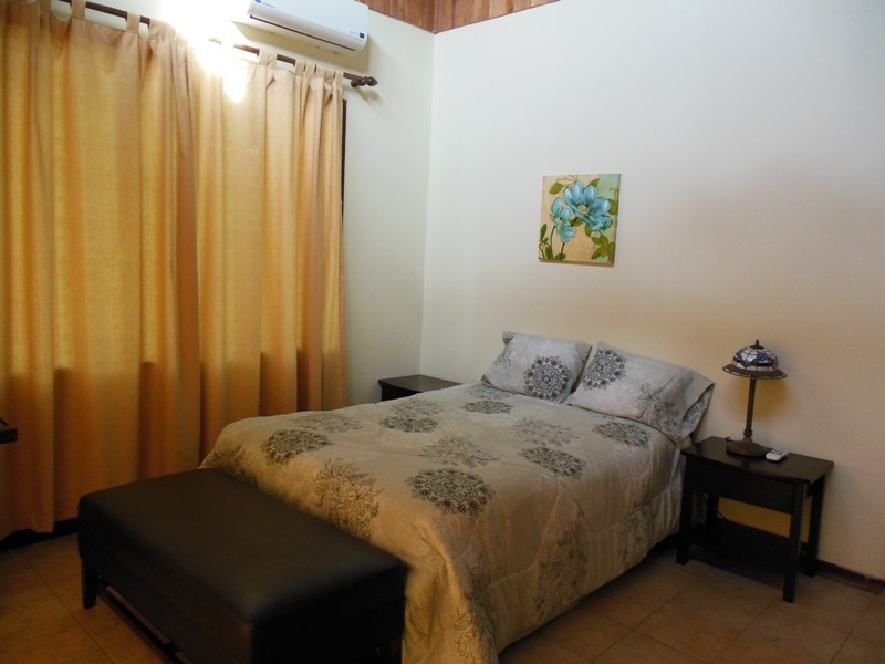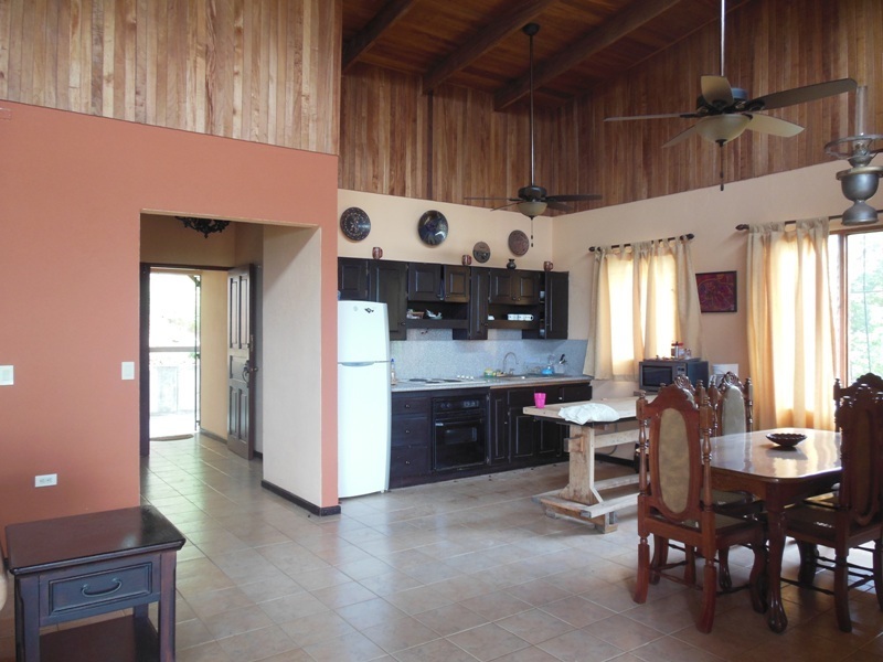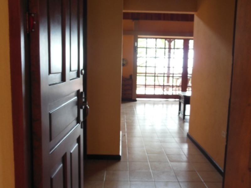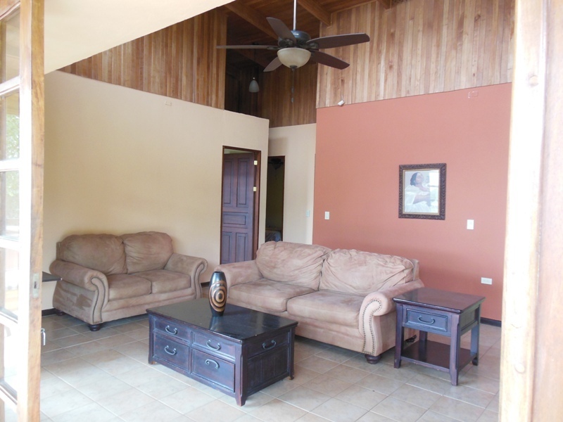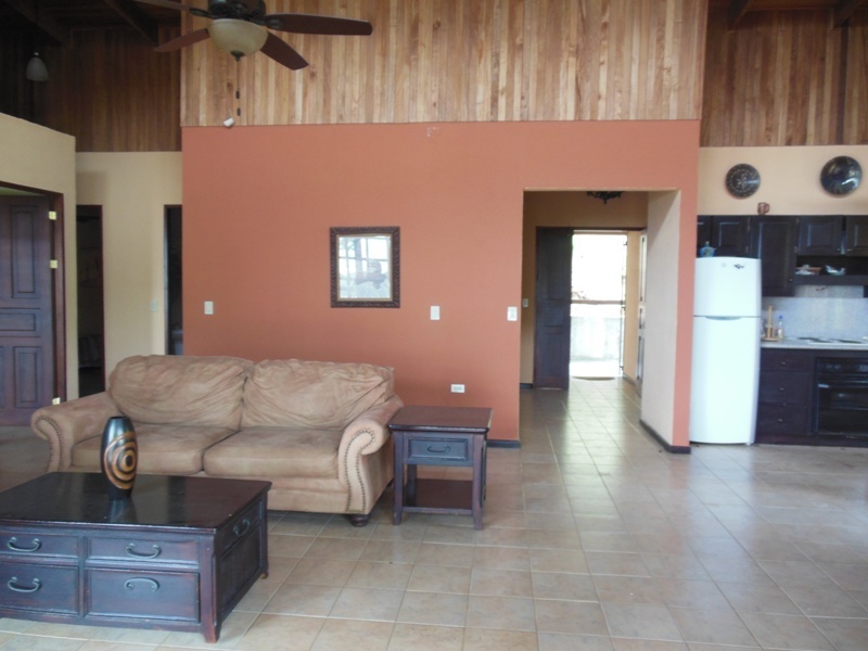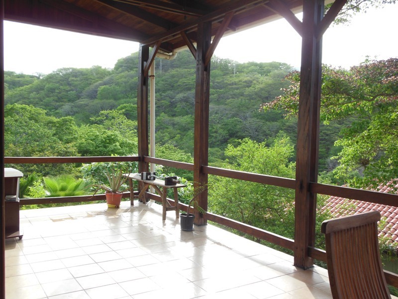 One of the best priced ocean view homes in our area offering: main floor with 1,900 sq. ft., four bedrooms, 2 baths, and fine Costa Rican hardwoods throughout. Ideally located with only a 10 minute walk to the beach. The massive wooden sliding French doors that lead from the open floor plan to the front porch provide easy access to the outdoor living space. On the lower level there is a bonus area of 70 sq. meters allowing for expansion for either a rental apartment, caretakers apt. or additional bedrooms. The high wood ceilings along with the open floor plan help to maximize air flow, economizing air conditioning use. The covered parking will accommodate at least 2 cars. It is only 25 minutes to the Liberia “LIR” Internaitonal Airport, 45 min. to the famous beaches of Flamingo and Conchal and one hour to the surfers beach of Tamarindo.
