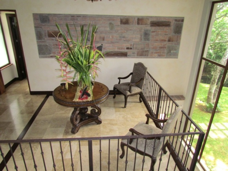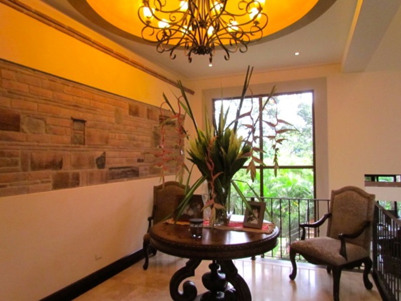 An attractive set of colonial artisanal iron lamps hangs from the ceiling. Natural light comes in through the big glass windows. Upstairs, half floor (one level) up from the main entrance are the other three. All the bedrooms are quiet and spacious and are air-conditioned. The main bedroom has both, a walk-in closet and a wall-to-wall built-in closet unit; a master bath with two sinks and spa shower. The other two bedrooms also have their won bathroom and walk-in closet. This beautiful single family home has great views to the magnificent garden from all its different areas. The house is inside a gated and guarded community that also offers: A clubhouse, BBQ area, a heated salt water pool, slush gardens, children playgrounds, soccer field, jogging trails and visitors parking areas. The house itself has an alarm system and a 16 Internet security cameras system. All in all, this home is a sculpture with well-integrated spaces that are both beautiful and practical. Top to bottom, and inside out, there is something very welcoming and intimate about it. DO NOT MISS THIS OPPORTUNITY.