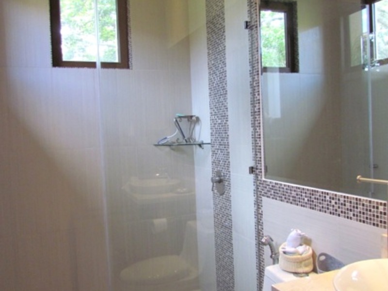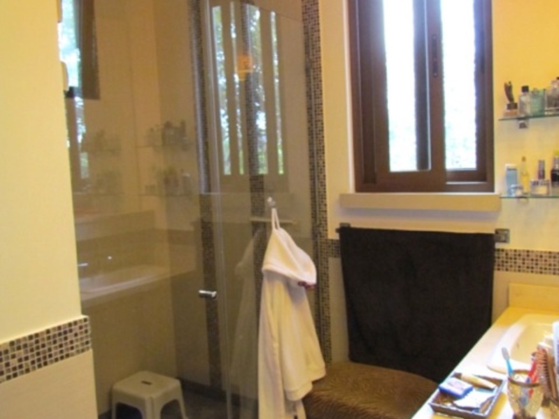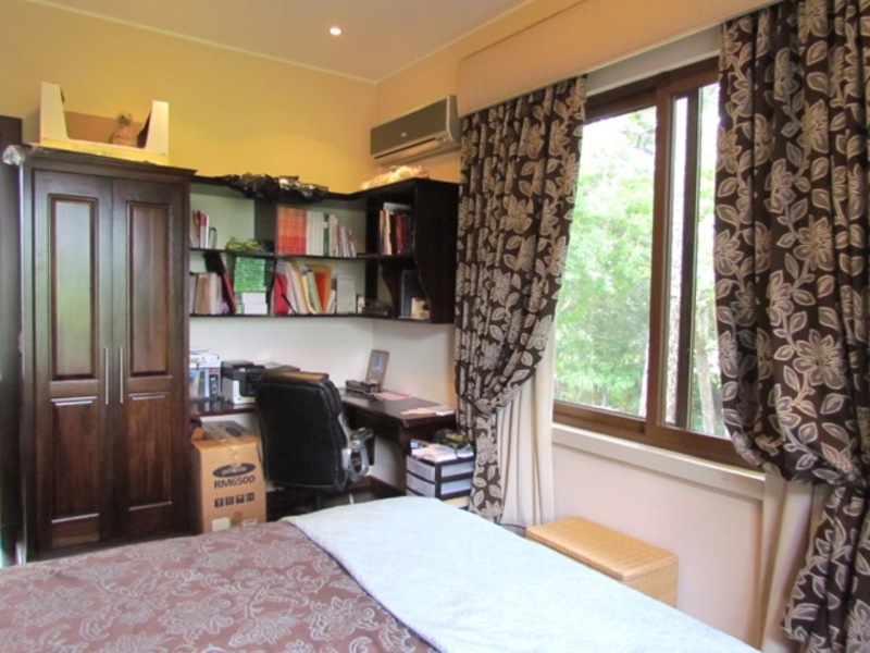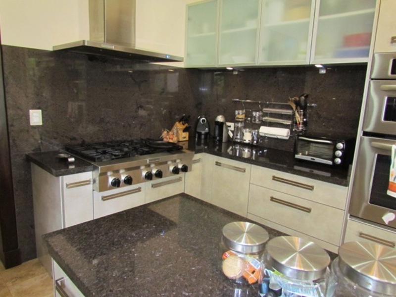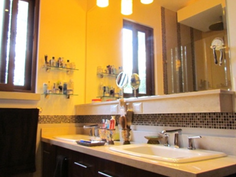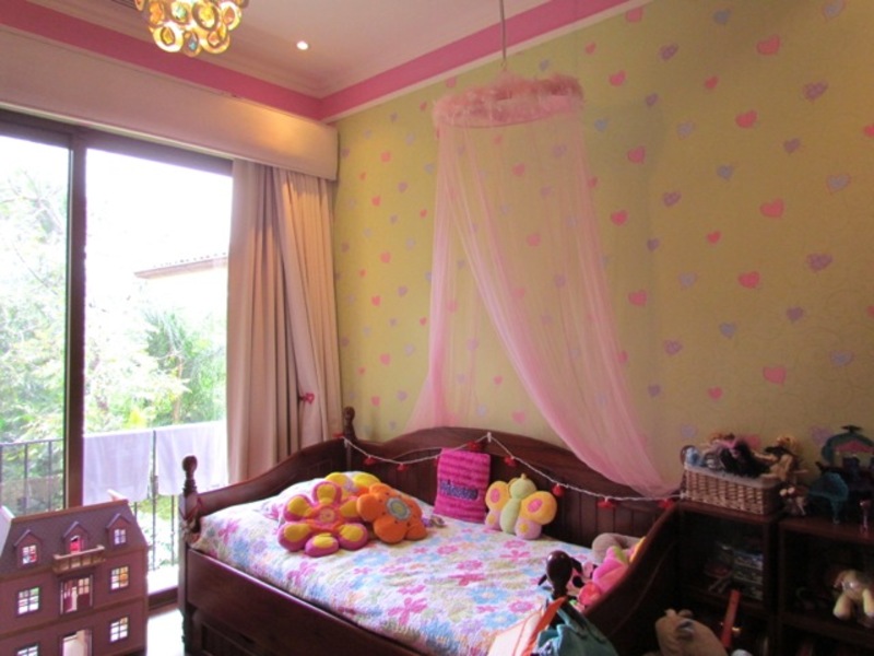 This jewel of a home, with 480 sqm of high quality construction, is full of detail inside and out. This home is spacious and intimate at the same time. It has four levels in three floors and sits on a 900 sqm lot. Built with personalized architectural details. The façade is if a colonial style. Once inside, still colonial style finishings with all sorts of modern features. A harmonious space opens up as you walk in to an extraordinary welcoming seating area full of detail on the ceilings and walls. On this same level you’ll find the guest room or studio with views to the beautiful and fully landscaped backyard, a full bathroom and a garage with lots of storage and 4 parking spaces. Half floor (one level) down is an ample living room; off the living room is the dining room; the island kitchen with a comfortable breakfast area and a large size covered terrace. The kitchen is well lit and modern; it has a granite top island with metallic stools, lots of cabinetry and a gas cooktop. In this same level, just off the kitchen, you’ll find the laundry area, maid’s bedroom and a full maid’s bathroom. Just off the main living room and half floor (one level) down you’ll find a cozy, informal but yet elegant sitting area with a really nice and ample bar and bar area with a half bathroom. Just outside the bar area, there is an outdoor BBQ area fully equipped and a wooden like deck with a sitting area with space to entertain lots of friends and family, mixing in with the large-size garden with different huge and small tropical trees that bring you that relaxing outdoors atmosphere we all want. The interior of the house is sober, with the predominant colors being white, brown, and beige. The contrasts of these colors in the walls define the space in myriads of ways. This beautiful family home has marble floors in social areas, wooden floors in the bedrooms and Italian porcelain tile in the bathrooms.