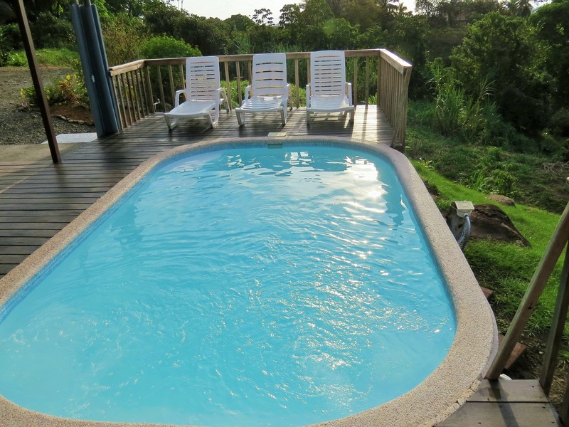 The property includes: - 2 Cabins - fully furnished - 3 Cabins - furnished with a bed and fan - Swimming pool - BBQ area - Parking Lot Located in Uvita, just a few minutes from the Marino Ballena National Park.