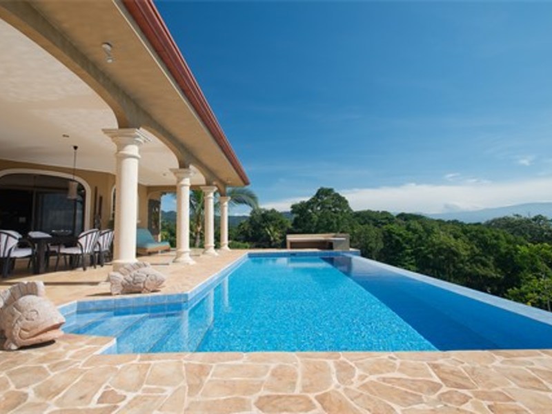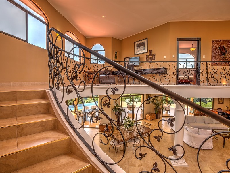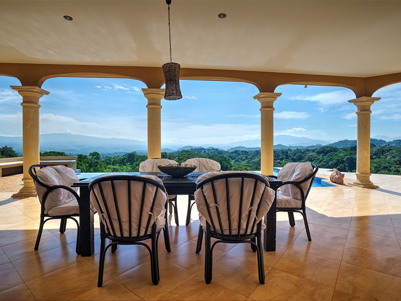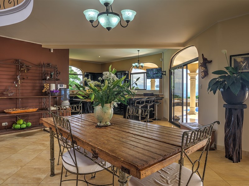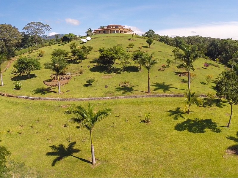This elegantly designed home has been priced to sell (618m2 - 6,652 sq. ft). This estate has, hands down, one of the best views in all of Atenas - San Jose city views and surrounding mountains. This uniquely large and very private property of 9.85acres (39,842 m2) is nestled atop a hill - elevation: 853 m - 2,800 ft - at the end of a private road. The altitude of this home allows you to experience the perfect temperatures that only Atenas' microclimate has to offer (day time high temperatures @ 28°C/82F and overnight lows in the mid 18°C/60'sF).