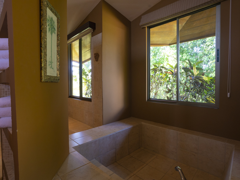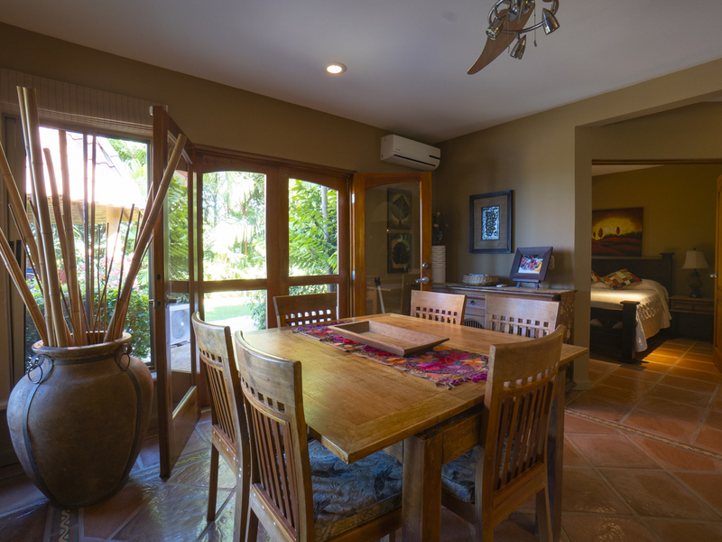 Off the kitchen through dual opening doors is a wonderful private courtyard, where you can sip your morning coffee and watch the local wildlife in your own secluded Costa Rican courtyard. The kitchen leads to a sunken living room with newly decorated and professionally finished furniture.