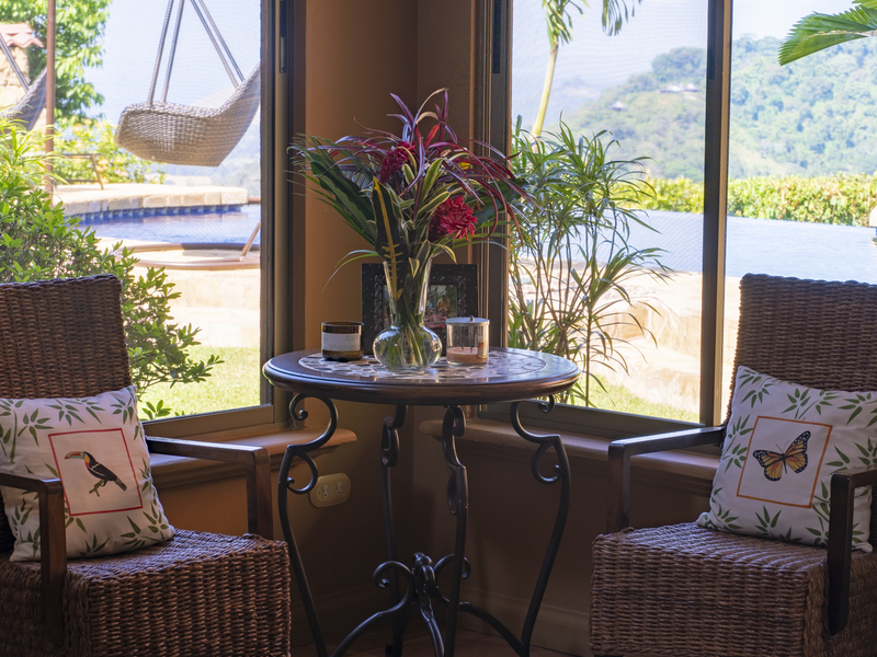 The outdoor entertaining areas have been well landscaped and maintained. The large infinity pool faces the Pacific Ocean, so you’ll never miss the breathtaking Costa Rican sunsets. The pool area provides ample space for chase loungers and gliders situated around the pool, making it easy to bask in the sun. The pool area and backyard also offer covered gazebo/pavilion, featuring an outdoor dining table and chairs. This allows you to entertain, no matter what the weather conditions.