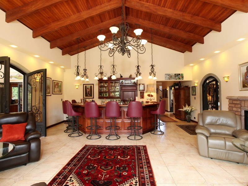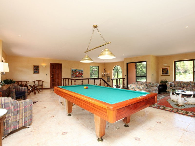 Your new estate is totally private and secure as it is fenced and also protected by hundreds of stately trees and bamboo growths as well as a river gorge behind the property and fronted on a secure paved road. The climate is temperate year round with no extremes. There are 3bedrooms in the main home with 3 ½ baths and a newly installed kitchen of gourmet quality, office, living room, library, barroom and dining room.The guest home has 2 bedrooms, 2 ½ baths, dining room, full kitchen and a kitchenette and two living rooms. Both homes are fully terraced with views looking out onto the professional size tennis court and gardens. The primary residence was completely renovated in 2013 and is a unique property. New tile roofs were installed on all of the residences and staff residences as well as the dog house.