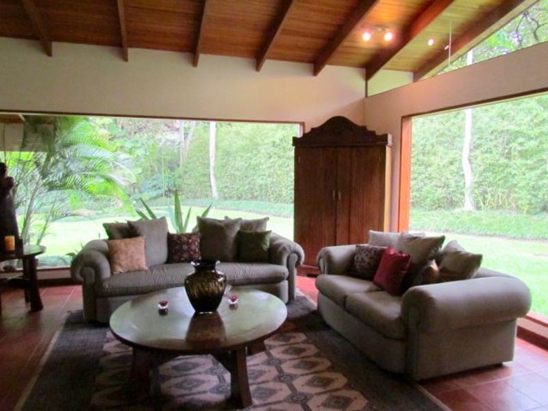 Amplia Casa Independiente con 5H y 4.5B en Venta en Jaboncillos, Escazu. Cuenta con un total de 2.000 m2 de terreno y 500 m2 de construcción con un maravilloso y amplio jardin, en la mejor zona residencial de Escazu. Esta hermosa casa cuenta con 4 dormitorios y 3.5 baños mas, cuarto y baño de servicio. El dormitorio principal está situado en la primera planta con acceso directo a la terraza cubierta y jardin. Tiene un gran baño principal con jacuzzi y walk-in closet. Las otras tres habitaciones están en el segundo piso, una de ellas tiene su propio cuarto de baño y vestidor y los otros dos tienen sus propios armarios y un baño completo para compartir. La casa cuenta con una amplia cocina abierta y área social informal separada del salón social formal, y luego, una gran terraza cubierta que se puede disfrutar con la familia y amigos también. La casa también tiene muchos otros espacios a los que se les puede dar diferentes usos y mucha zona verde.