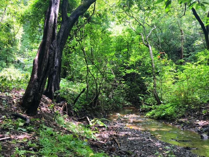 The grounds span five acres and the fairytale is completed by a small creek winding through the forest below the main home.