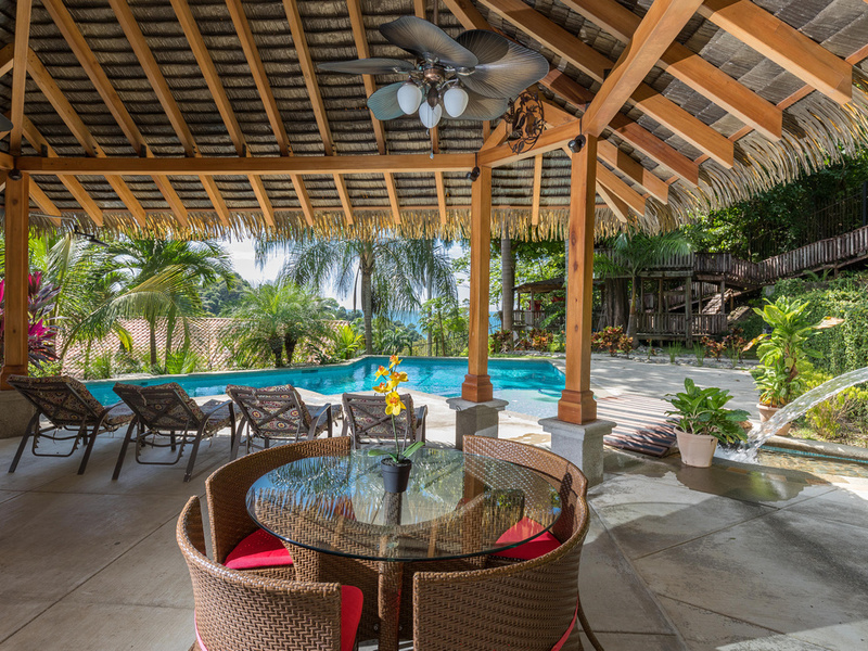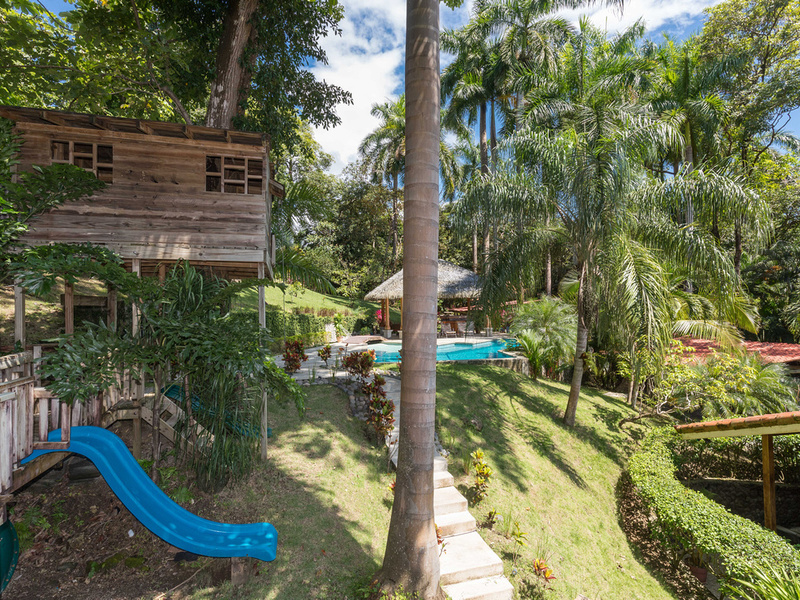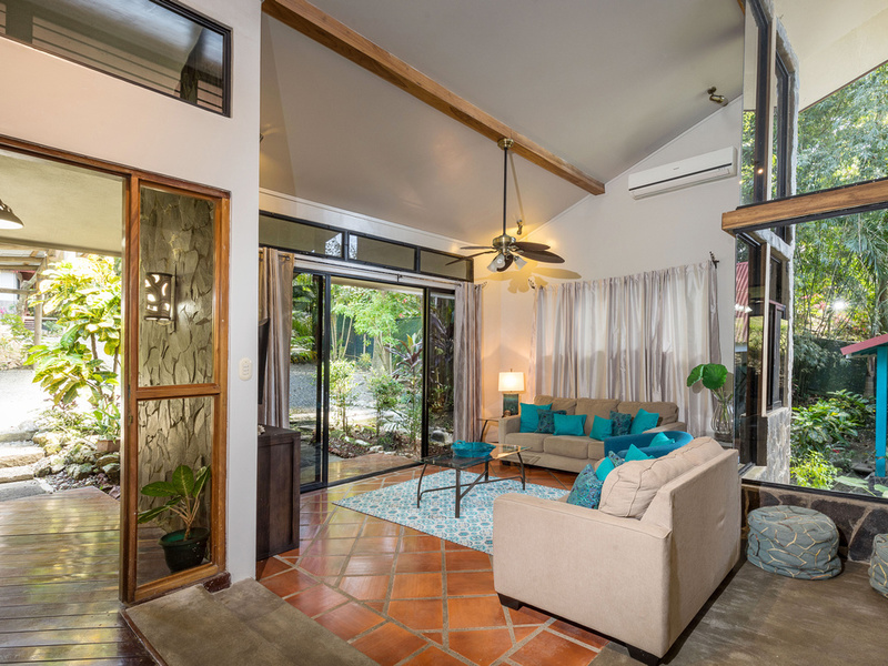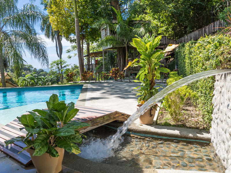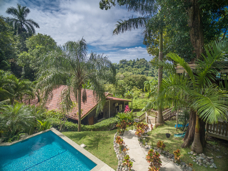 Located on a dead end road and situated behind a private entrance, Casa Colibri is THE PERFECT property for multiple families with Kids or a B&B type business. The grounds are full of lush gardens, huge royal palm trees, lots of wildlife and tremendous ocean views. The property is approx 1/2 acre of prime land in the heart of Manuel Antonio The main house is newly remodeled and furnished with over the top accessories. 3 Bedrooms, 2 large bathrooms, large kitchen area, living area and a beautiful Coy pond.