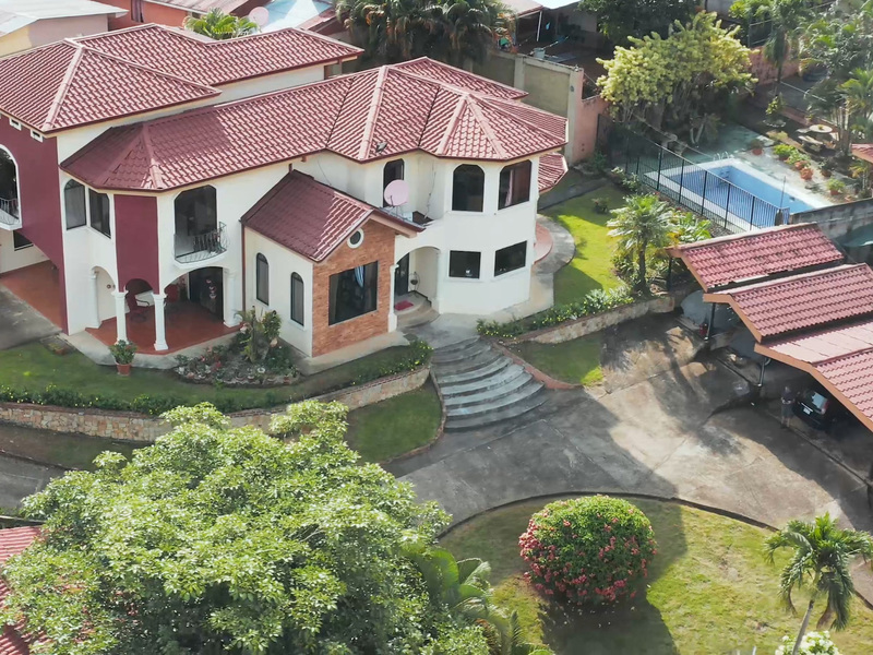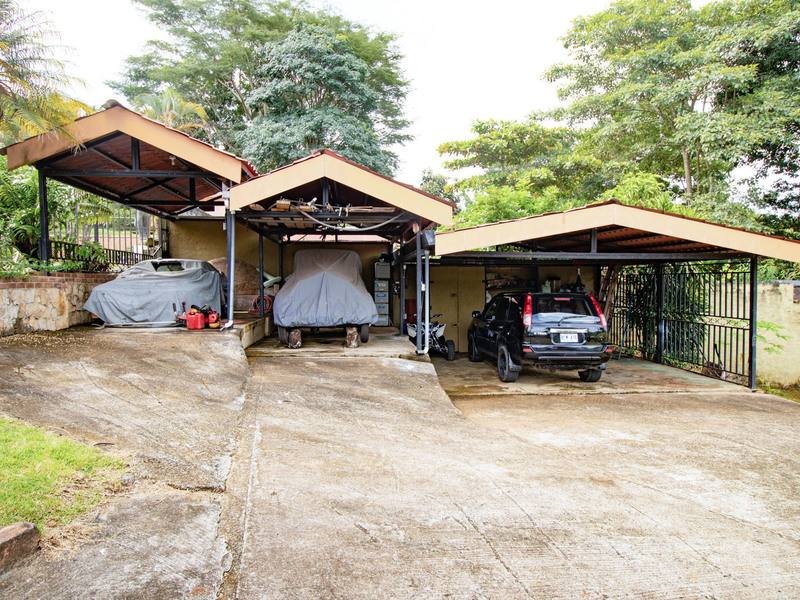 Even more impressive than the house are the grounds. The entire property is gated and there are three formal entrances with motorized gates. Two enter directly from the main road going to San Isidro and the third exits out the back of the property into the local neighborhood. The entire driveway is paved and spaciously set out with enough covered parking for 6 cars.