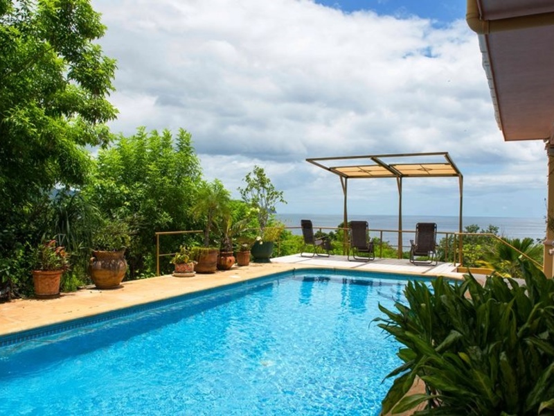 The main villa offers; 2 bedrooms, 2.5 baths (2nd bedroom has outside access), ocean view from all rooms. There are expansive outside covered terraces (seating for up to 12). Additional amenities; large swimming pool, lighted waterfall feature, remote control outside designer lights, fully furnished and beach access across the small community road.