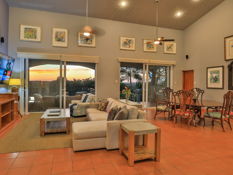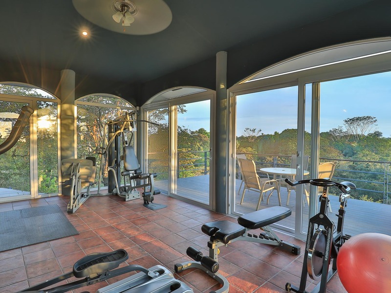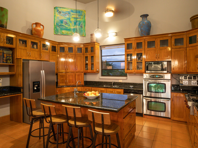 The spacious main house, of over 5500 sq. ft, boasts 5 large bedrooms, 3.5 baths, large open spaces with high ceilings throughout. A short distance from the main house, and nearer to the entrance, is a large garage/workshop, with a very large and comfortable one bedroom, one bath, guest house, with private balcony, on top of it. The main house and guest house are both completely private from each other. The features and upgrades to this house are amazing, and way too long to list here. There is a true chef’s kitchen, with double ovens, Wolf brand range, walk-in pantry, large island, more than ample hardwood cabinets. The kitchen also includes a dishwasher, as well as a professional Britt Espresso machine. The house was fully re-furnished inside and out just two years ago with all top-quality furniture imported from New England. Every room has matching sets of fine furniture, new window treatments, and all bedrooms have 55-60” TVs, except for the living room which has a 75” TV. The master bedroom is enormous, and has its own seating area with wine fridge, a large private deck with beautiful mountain views; a perfect space for reading in a hammock, electric window blinds, and a massive walk-in closet that connects to the giant master bath, complete with an automatic Japanese bidet toilet. The villa has a fully equipped home gym on the first floor, which opens to an outside deck, perfect for yoga and meditation. Outside the home, there is a large infinity-edge pool, plenty of decking, and very comfortable outdoor furniture to enjoy the sunset from.