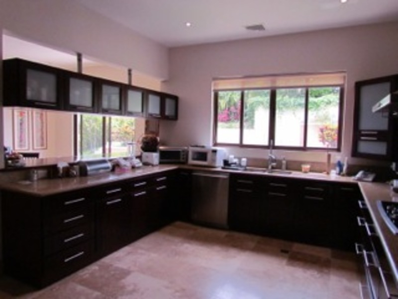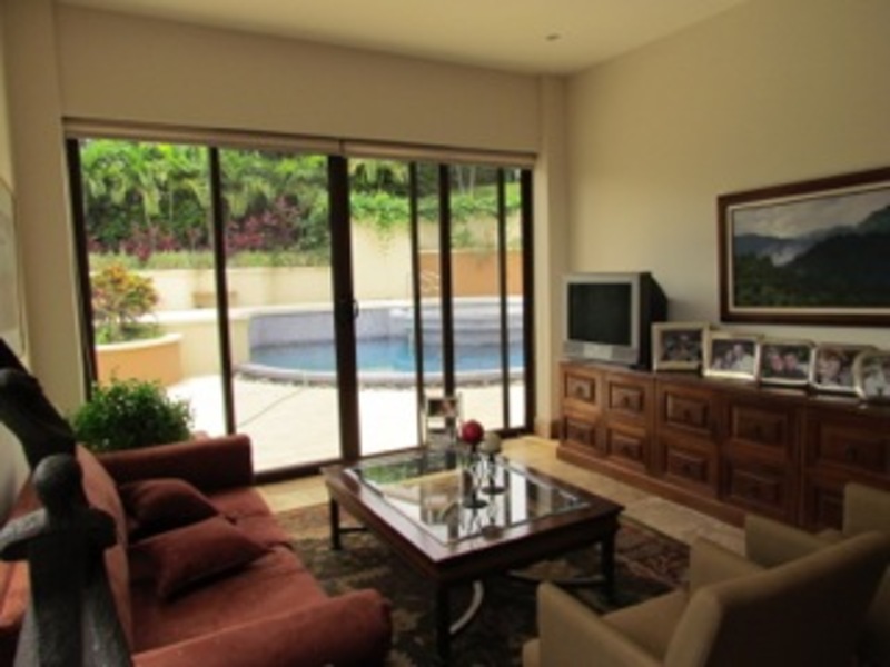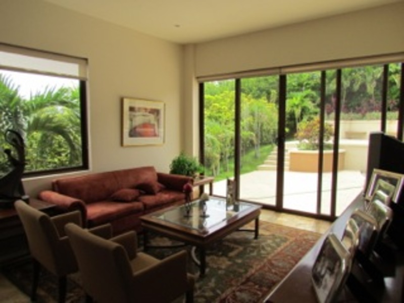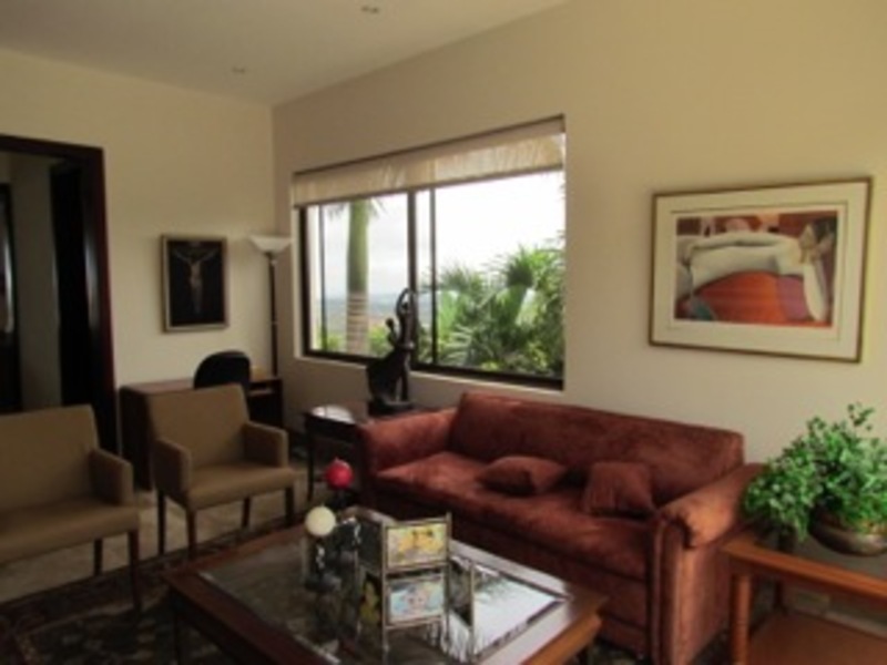 Esta casa está construida con atención al detalle y es un modelo de diseño moderno, el cual se centró en las áreas sociales, ventilación y vistas. La casa está llena de luz natural y aprovecha al máximo los puntos de vista con sus 3 terrazas y puerta corrediza de cristal. Si le gusta lo moderno y con vista, esta es una visita obligada. La casa tiene un estilo abierto y un comedor, aparte una oficina privada o sala de TV familiar. El área social se abre al patio y tiene acceso desde la zona de parqueo. La cocina tiene barra americana, sobres de granito y muebles de madera. Toda la casa tiene acabados de lujo: mármol, piedra, granito y madera maciza en toda la casa. En este nivel, tambien esta el área de lavanderia, cuarto de servicio con baño, garaje para 4 carros, area de máquinas y bodega. En resumen: Grandes vistas, piscina, gran terraza, jardin plano, maderas, ascensor, aire acondicionado, y mucho más.