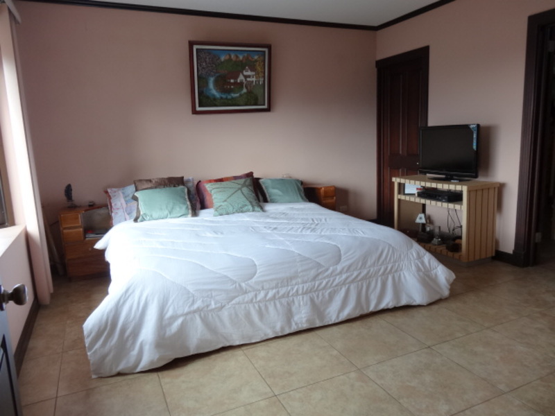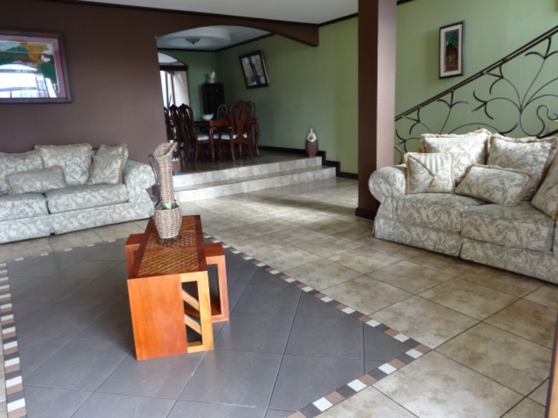 Casa de Dos Plantas en Residencial Seguro en Tres Ríos. First floor: It has a very spacious living room, semi-integrated dining room, all with Italian porcelain floors, guest bathroom, front garden with a fountain, solid wood kitchen with granite countertops, terrace, patio, laundry room, garage very spacious for 3 cars. Second floor: It has a very spacious main room, with a bathroom with Jacuzzi and shower, plus W / C, balcony overlooking the Carpenter, a study room or TV, 4 bedrooms with closet that share a full bathroom. The house has very good finishes, Italian porcelain floors throughout the house, solid wood doors, baseboards and cornices. Main door and the balcony with stained glass windows. The whole house is of block, there are no light walls. It has a water tank with a pump and two septic tanks. The Residential has 24/7 security with controlled access, the fee is ¢ 25,000 colones per month, pets are allowed. Excellent cubing near the track to Cartago.