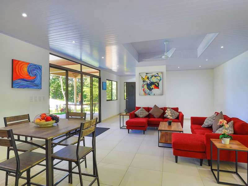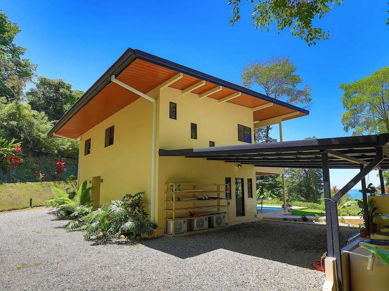 The 1.2-acre property is a short drive from the coastal highway and the two-mile strand of national marine park called the Playa Ballena. The property offers gorgeous sunset views of the Pacific Ocean and Isla Ballena all framed by lush primary and secondary jungle. There is even a trail down to a creek that runs throughout the year.