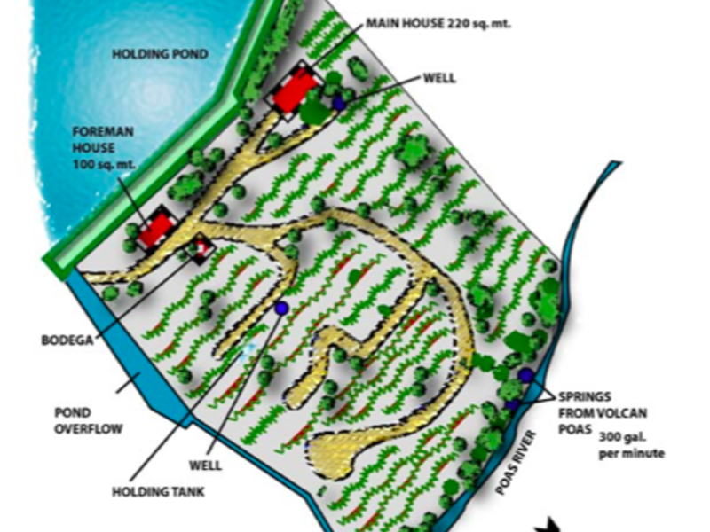 Esta hermosa finca de café se encuentra en las colinas de color azul verdoso de la región Poás en Alajuela, la cual es una de las más ricas zonas de cultivo de café en Costa Rica, y se encuentra a 15 minutos del Aeropuerto Internacional Juan Santamaría, 45 minutos de San Jose. Son más de 8 hectáreas de las mejores variedades de café en producción profesional, muy alto rendimiento debido al cuidado y atención que se presta por su actual propietario. Su tamaño es de 10,8 hectáreas (27 acres), y tiene unas vistas panorámicas del Valle Central. Bordeando el principal río Poás, enormes árboles traen sombra a los cafetales de la finca, los cuales ofrecen una sensación majestuosa en el paisaje. Tambien cuenta con gran cantidad de agua suministrada por el río Poás, por un lado, dos pozos de gran capacidad, varios manantiales naturales y el depósito municipal de agua en el otro lado de la finca. Esta propiedad realmente califica como un paraíso de agua abundante. Esta finca tiene 8 hectáreas con café Catimor y Catuaí, árboles frutales (mango, pomelo, mandarina, limón, jocote y aguacate).