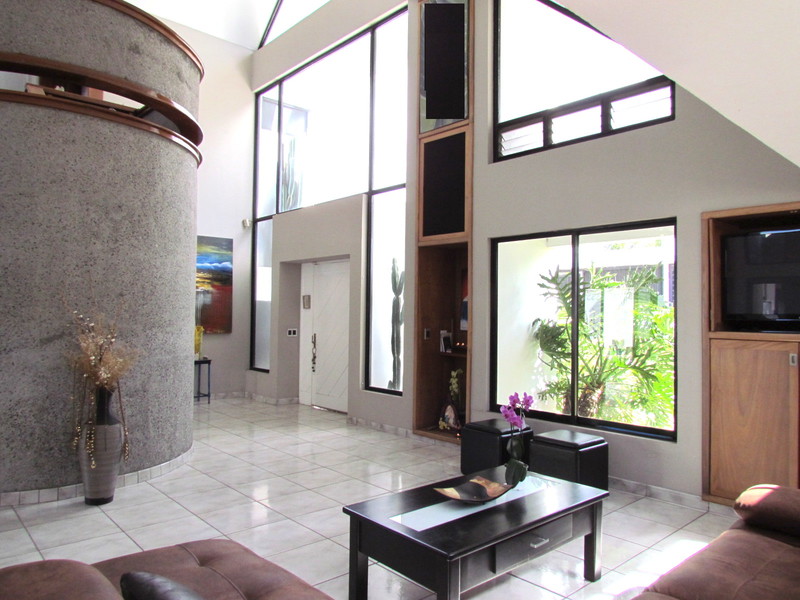Ideally located in one of the most desirable and secure residential area in Escazu; well known for its tranquility and location. Close to all services, supermarkets, restaurants, shops and with direct access to the Route 27; this house is independent and has 24/7 security for only $79/month. Built on 1607m2 of land, the construction size of the house is 582m2. On the first floor, there is a nice living room area with dining room that leads to the huge garden. The kitchen is separate, has a good size and is extended by a pantry. There is maid’s quarters and laundry room next to it. There are 3 bedrooms on the first floor; each one with its own bathroom and two have an independent access. On the second floor, there is a family room that could also be an office or library and the master bedroom with a covered terrace converted into a gym corner, bathroom with Jacuzzi, shower, double sink and walk-in closet. The two other bedrooms have their own bathrooms and big closets. The entire house is full of natural light, has thick walls that keeps the house cool and has a lot of storage space. The garden is wide, there is a big private pool (54m2), Jacuzzi, rancho with bar and barbecue area, cinema room with A/C and there is space for more than 6 cars. Evaluated at $1,012,000 3 years ago, this won’t last on the market. Call us today for a private visit!
