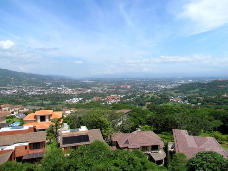 Beautiful and unique mansion in Escazú. This amazing house has it all. If you have a big family, this is the place for you. It's located in one of the best and most exclusive gated communities in Escazú and it offers an extraordinary 360 degrees view of the whole valley, and even parts of the Pacific Ocean. There are internal and external balconies and terraces where you can enjoy this view as well. Also, it is close to many business and commercial centers for your comfort. This is a 3 floor home with 6 bedrooms, each with its own walk-in closet and bathroom. This includes a guest bedroom with its own, private kitchen. It also has a big and spacious gourmet kitchen, lobby area, studio, game room, exercise room and lounges. On the bottom level, there's the 6th full bedroom, a recreational family area with its own bathroom where you can enjoy, relax and exercise with your loved ones. At last but not least, a very modern and private swimming pool and jacuzzi. The mansion in addition has luxury imported finishes, high ceilings, alarm system and lots of storage areas. It also includes all appliances like dishwasher, double oven, gas range, microwave, washer/dryer, garbage disposal, hood fan, and refrigerator. The community offers a tennis court, a clubhouse, 24 hour security, visitor parking and more. Low maintenance (condominium fee). Don't miss this opportunity! Hermosa y única mansión en Escazú. Esta increíble casa lo tiene todo. Si usted tiene una familia grande, esta es la casa para usted. Se encuentra ubicado en una de las mejores y más exclusivas urbanizaciones cerradas en Escazú y ofrece una extraordinaria vista de 360 grados de todo el valle, e incluso partes del océano pacífico. Hay balcones interiores y exteriores y terrazas donde se puede disfrutar de esta vista también. Asimismo, se encuentra cerca de muchos negocios y centros comerciales para su comodidad. Esta es una casa de 3 pisos con 6 dormitorios, cada uno con su propio walk-in closet y baño. Esto también incluye un cuarto para invitados con su propia cocina. También cuenta con una cocina gourmet, vestíbulo y salones grandes y espaciosos; una oficina, varios espacios para entretenimiento, otros para ejercicio, bodegas y mas. En el nivel inferior, hay una zona de recreación con su propio cuarto de baño completo en el que puede disfrutar con sus familiares y una piscina muy moderna y privada. La mansión, además cuenta con acabados de lujo importados, techos altos, sistema de alarma. Además tiene sus propios electrodomésticos como lavaplatos, horno doble, cocina de gas, microondas, lavadora/secadora y nevera. El condominio ofrece canchas de tenis, una casa club, seguridad 24 horas, parqueo de visitas y mas. Mantenimiento de condominio muy economico. ¡No te pierdas esta gran oportunidad!