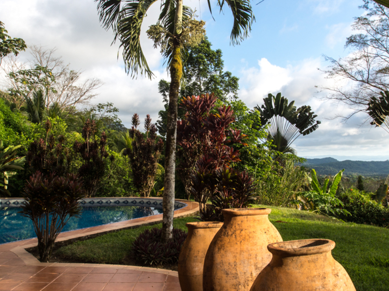 This exceptional property has it all. A lovely home with private guest suite, a large garage with additional guest quarters above, and a fantastic ocean view. There are many flowering bushes and mature fruit trees on the well-maintained grounds, lovely terraces, an outdoor dining area, a large pool with bathroom, and a gazebo provide ample space for tropical outdoor living. The extensive 5,500 square foot concrete driveway and parking areas are excellent for this income-producing property.