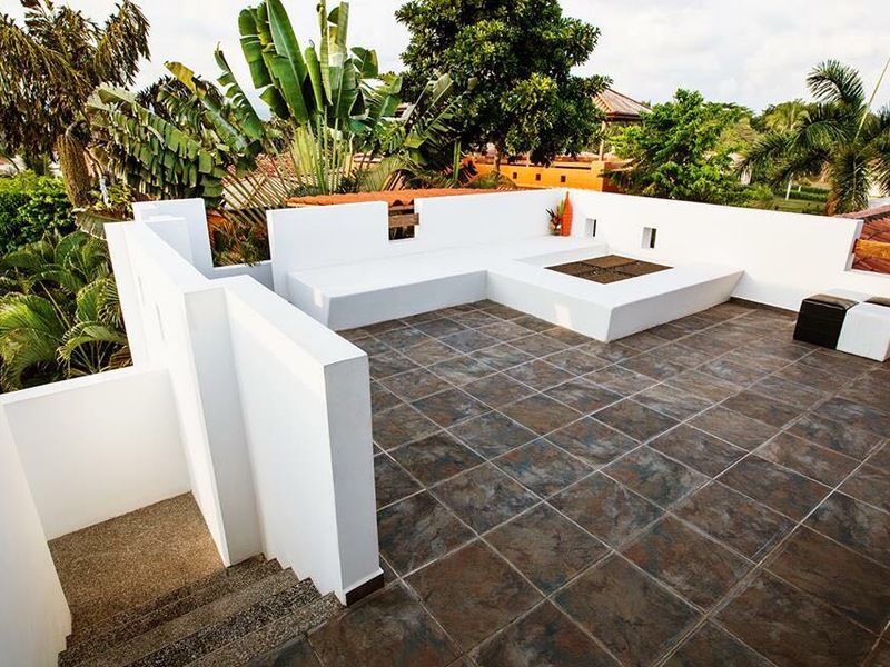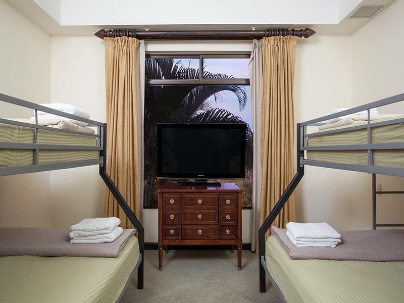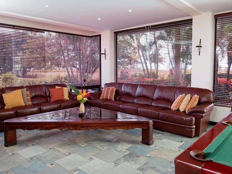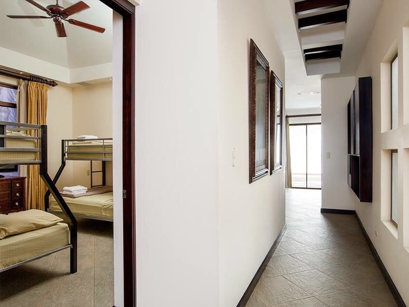 It consists of 6 bedrooms with 3 of them master suites. It is ideal for large groups and will sleep 12 people. There are 4 full baths, 2 half baths plus 1 full bath in maids quarters There are two large great rooms for full-group activities while affording all the privacy in its living spaces. Fully equipped kitchen, dining area and comfortable lounge. There is a sun deck on the roof, gym, Jacuzzi, large pool plus a roof top deck