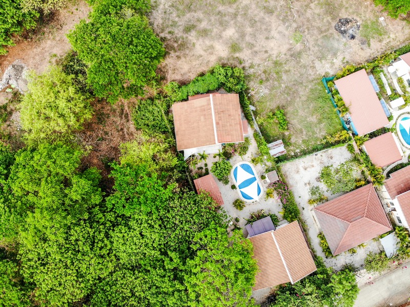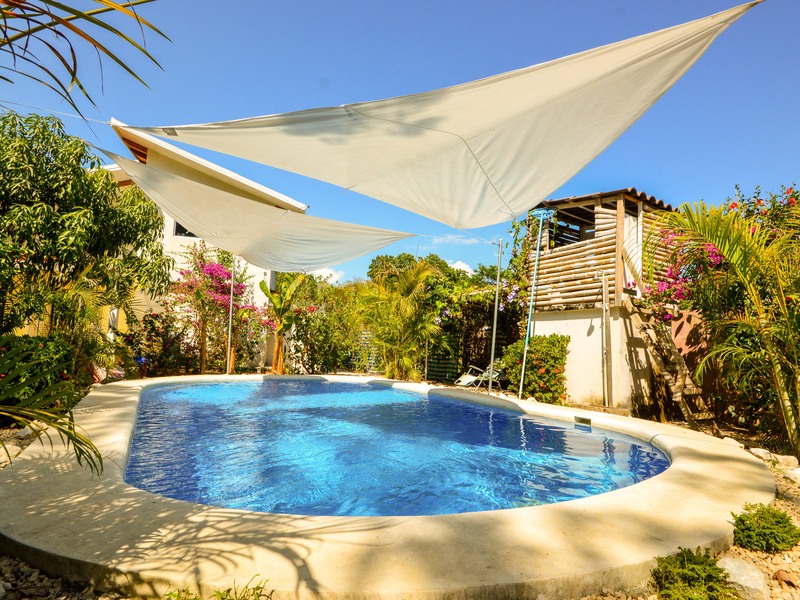 The two homes share a pool in the middle of the property and have a lush garden surrounding it. A contemporary floor plan and artist design, designed with Costa Rican climate in mind.