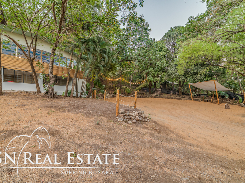 Incredible opportunity to own over 3 acres (12,000m2) at the entrance of Playa Guiones and only a couple minute drive to the beach! This large piece of land is located next to Il Basilico and across the street from Bosque Gated community and the Bodhi Tree. Perfect location for a residential development, condos, shopping center or mixed use. The property has over 300 feet (100+mt) bordering main road (Ruta 160), ridicules old growth. Imagine relaxing in a hammock under a huge primary growth Guanacaste tree or picking fresh mangos off of the 50-60-year-old trees in the garden, the scenery is incredible. There are also two existing structures, a primary building which has recently been used as an event/community center and the other one with 4 cabins which needs some remodeling done. A possible joint venture is available.