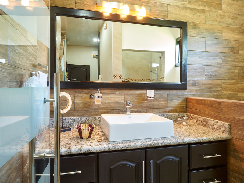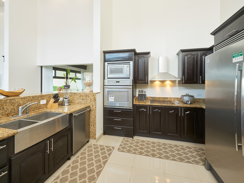 The main home (4 BR/4.5 BA) measures 4,625 square feet and is brand new, built in 2016. Its four bedrooms each have their own en-suite bathrooms; the two master suites also have private sitting rooms. High end finishing touches were used throughout and the use of stone and granite for on walls and counters creates an elegant feel.