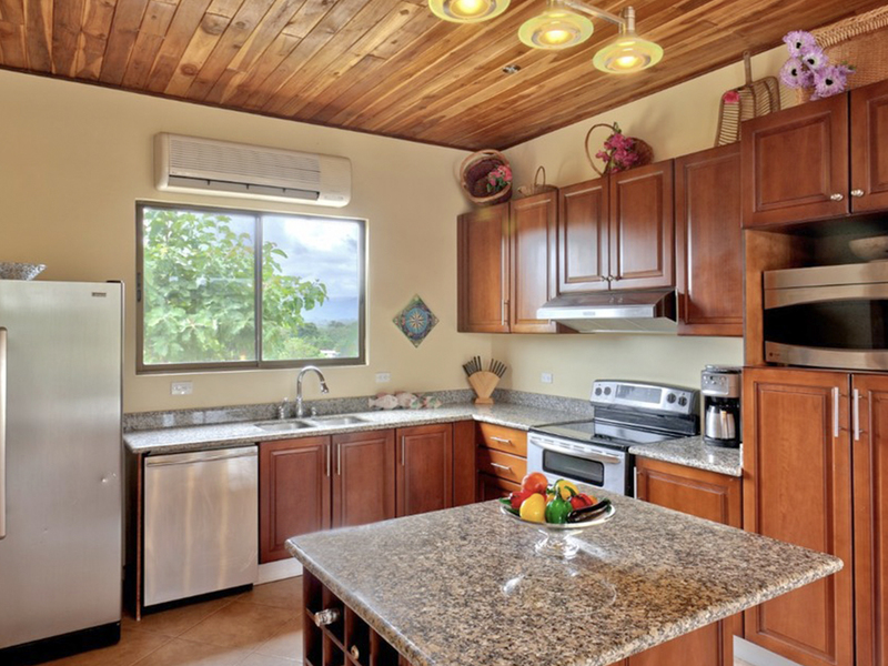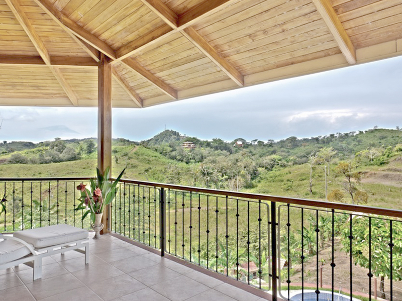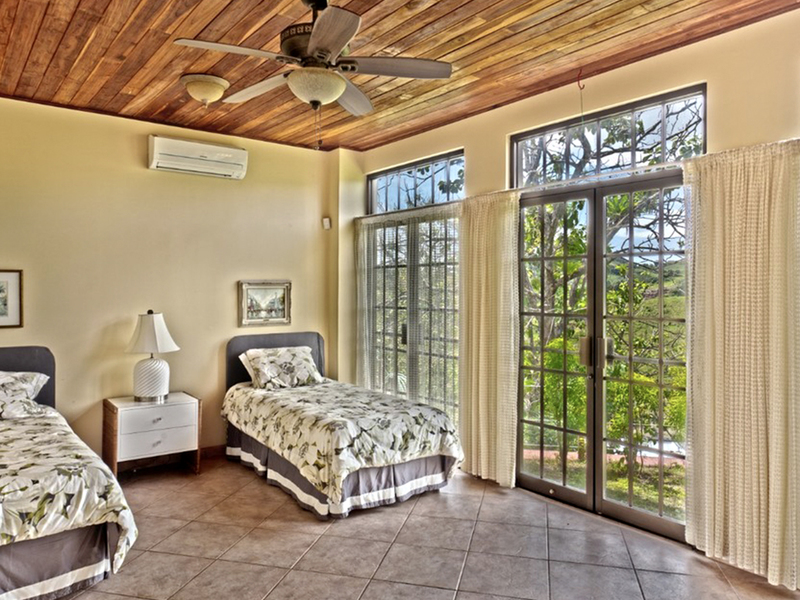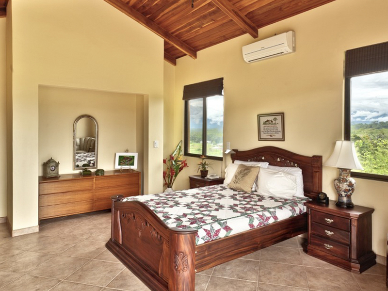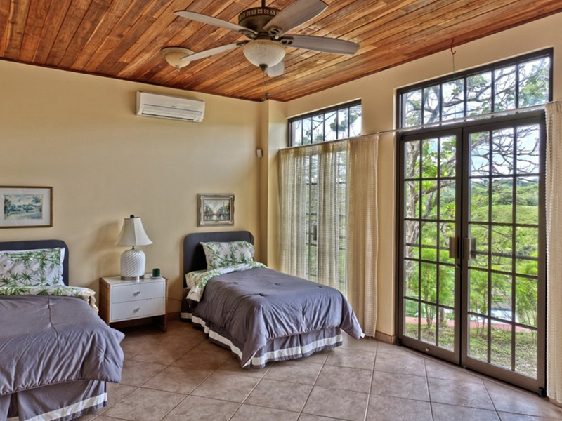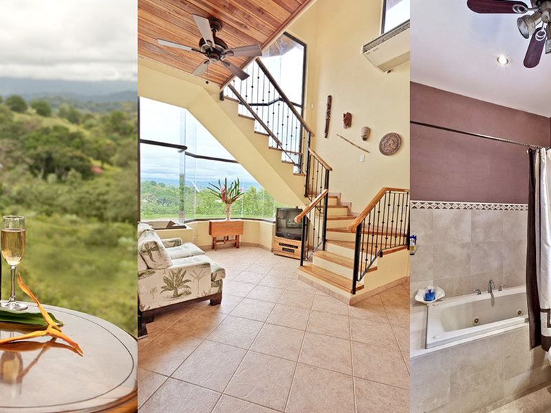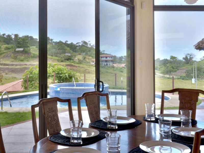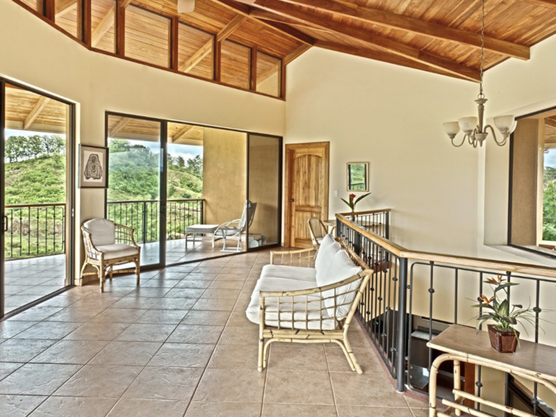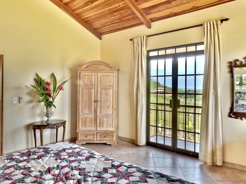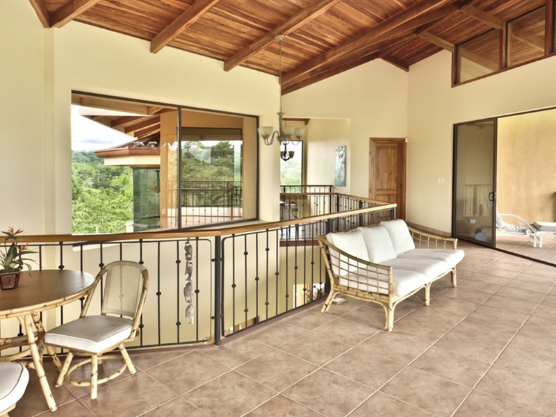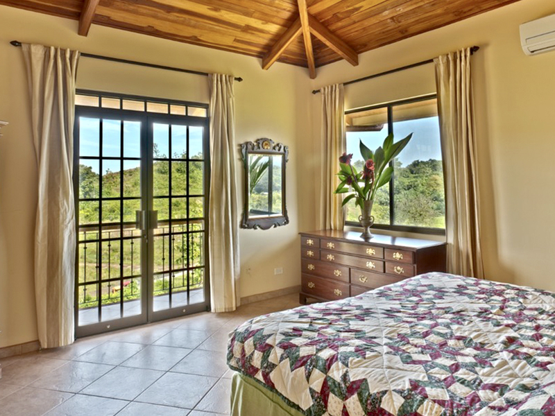 The home is actually a total of three houses on one property. The main home, is an expansive 3 bedroom, 3.5 bathroom luxury rental property which is perched on the highest part of the property. You enter the fully gated compound and drive up the estate driveway to the carport and main entry of the home. You are greeted by panoramic views of the Fila Chonta Mountain range and Costa Rican rainforest from all sides. the main floor of the home is a beautiful open floor plan, with exotic hardwoods and hosts the cooks kitchen, living and dining area, a guest bedroom with full on suite bath, an office space, and a half bath for guests. There is also a fully laundry and service here on this level. The second floor is a lofted area with two twin master suites, each with their own on suite bath. There is a beautiful and newly refinished pool and jacuzzi area with wonderful decks of the home, ideal for relaxing and watching the sunsets, daily visits from the Scarlet Macaws or to share time with friends and family.