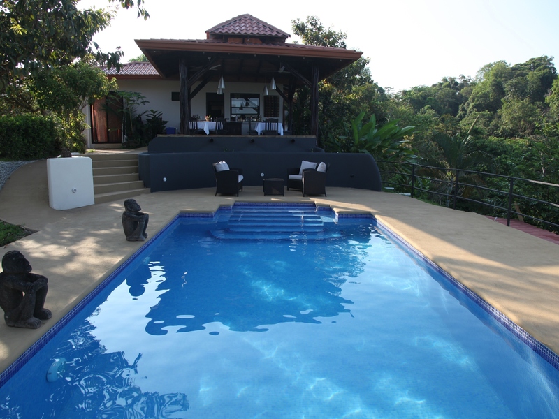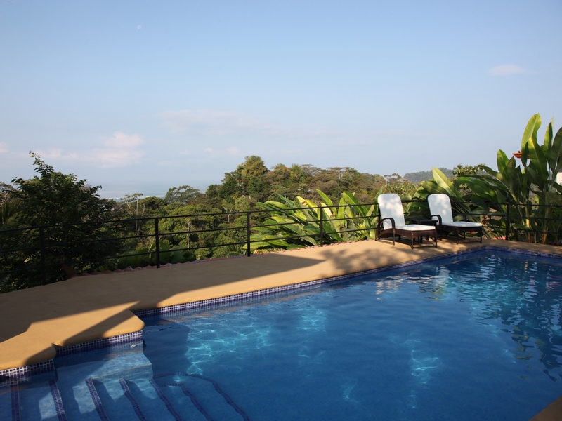 A boutique hotel perched on an ocean view hill top in the international destination of Ojochal, Costa Rica. This soulful 5 bedroom and 5 bathroom B&B was recently remodeled in 2012 and features a new lobby, restaurant, and lounge. All the rooms were completely re-done and re-decorated. There are 3 standard bedrooms with en suite baths on the main level all with private ocean view balconies. One of these rooms was converted to be handicap accessible as required by law for an operational hotel. On the lower level there are 2 larger suites with private bathrooms and terraces.