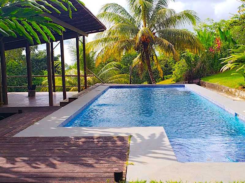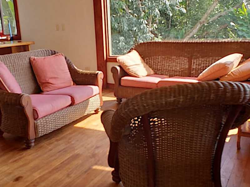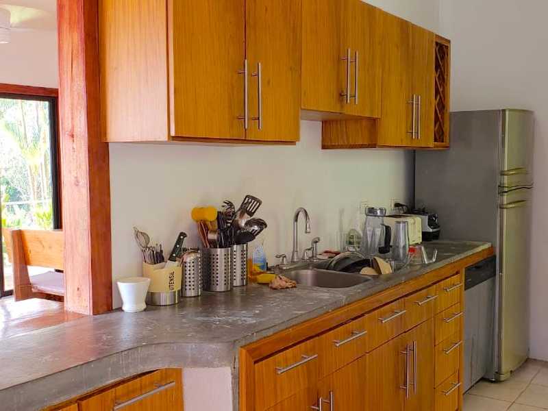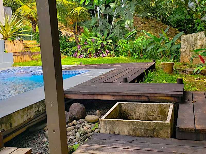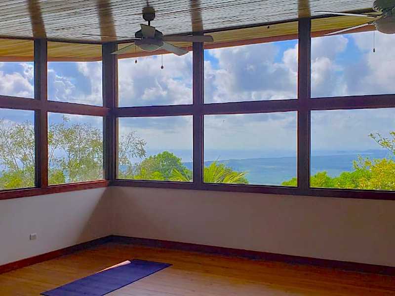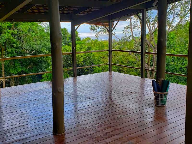 The retreat is comprised of a main building, a guest suite building, a pool and yoga deck. The main building holds 4 bedrooms, 5 bathrooms in total. 2/2 are located on the lower pool level, 1/1 is located on the second floor along with the kitchen and indoor/outdoor living area as well as a large storage closet, and a 1/2 located on the third floor with an additional indoor satsang room, which is the best place to enjoy the inspiring ocean views. The pool and wooden terrace adjoin the main building, leading to the covered wooden yoga pavilion which overlooks the jungle, ocean and stream. The separate guest suite building holds 4 rooms, each with en suite bathroom, which area accessed from the covered wooden terrace and enjoy views over the jungle and ocean. Located within a gated community the property is secure and features the utmost in privacy.