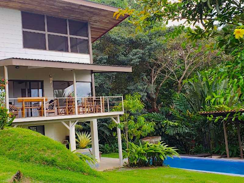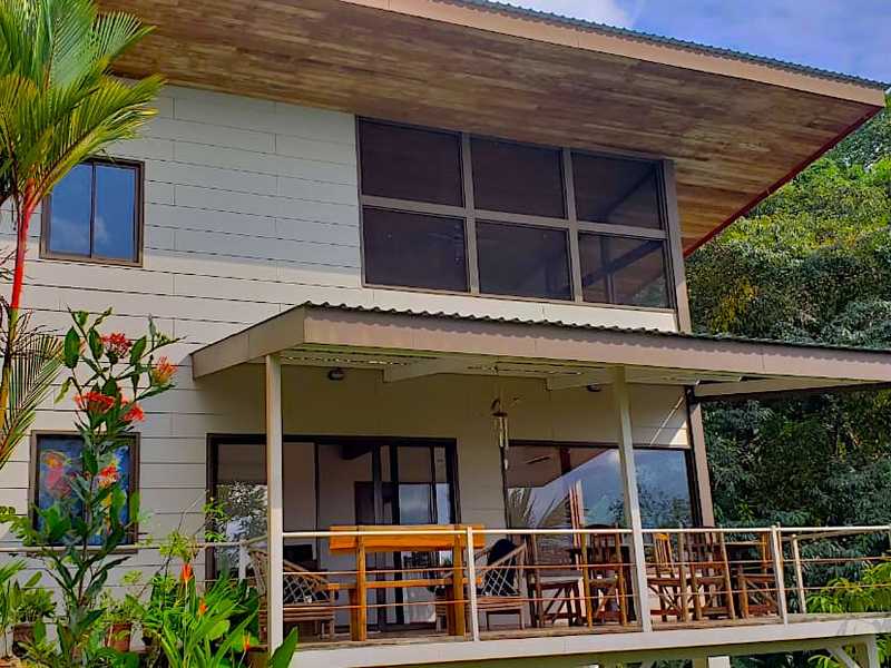 Built in 2011, this property holds amazing potential for anyone who is searching for a picturesque location to establish a spiritual or wellness center, a quiet B&B or to enjoy as a family vacation property. As soon as you set foot on the property, the tranquility experienced by all senses is grounding. The property is made up of 4.5 acres of rolling landscaped land and a secondary large ocean view building site with private entrance, meaning there is plenty of area for building a large private residence. The property is bordered by a beautiful cascading stream, which provides a truly peaceful auditory soundtrack to the yoga platform and pool area; combined with the surrounding jungle and the panoramic ocean view all the way to Manuel Antonio National Park, the serenity experienced here is soul touching.