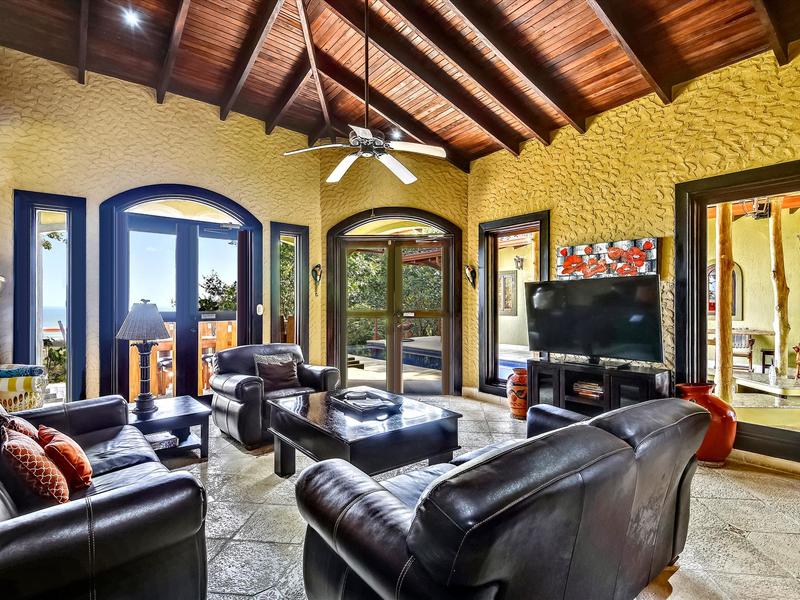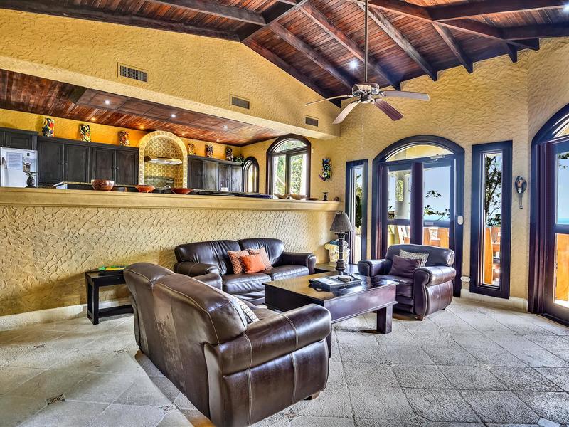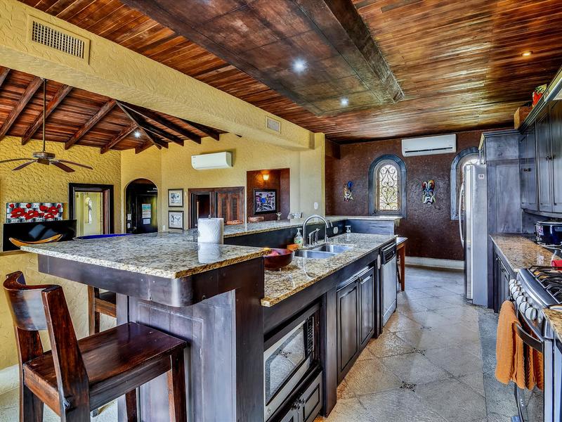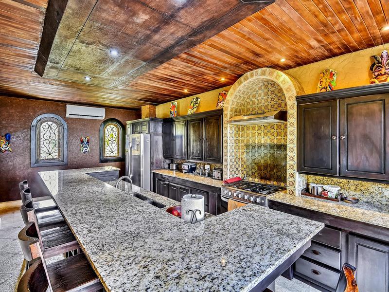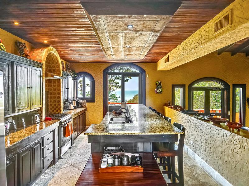 The Main house is 2 buildings connected by the pool. It features open concept living areas, high ceilings and many handcrafted & beautiful finishes. The master suite is located upstairs, very private and spacious with outstanding ocean views from both the master bedroom and bath. The separate bedroom wing has 4 bedrooms. Each with in-suite bath and private entrance from the outside