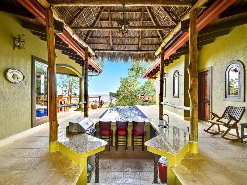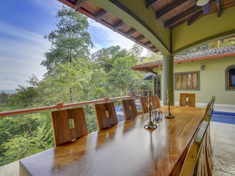 This is the home you imagine when you think luxury Costa Rican Living. Monkeys play in the trees every day. Macaws fly overhead while iguanas sunbathe on the steps. You see and hear the Pacific Ocean from everywhere. Although you are just a few minutes from the busy Jaco center, you will feel like you are alone in a mountainside jungle. There are three buildings with eight bedrooms, nine bathrooms, a gourmet kitchen, and swimming pool overlooking the Pacific.