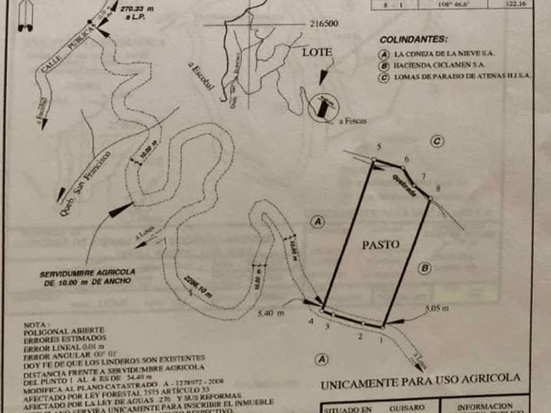 Beautiful property with 7530 square meters of land. It is in an exclusive area of Atenas (Hacienda Atenas). This beautiful property located just 7 minutes from downtown Atenas, has security guards at the main entrance 24 hours a day. In addition, this property has approved building permits. It is located away from the noise of the city and vehicles.