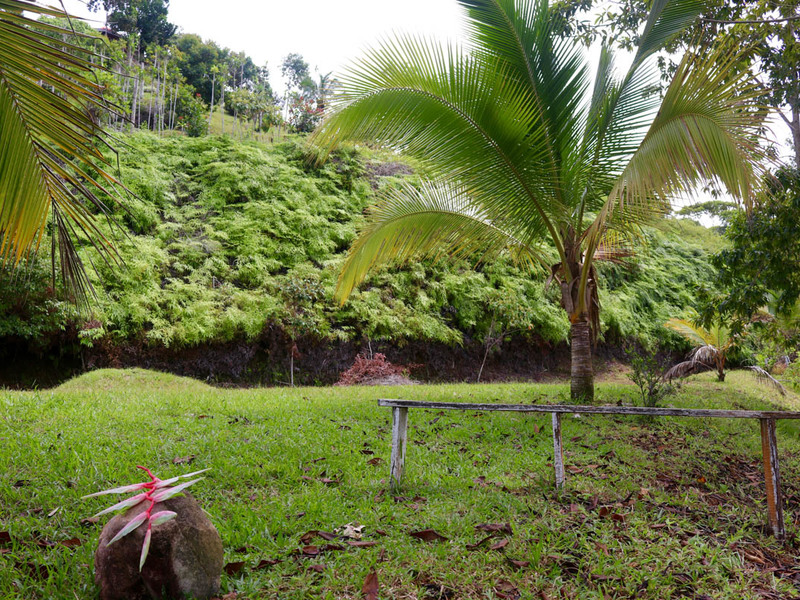 There is also a stepped down flat area which would be perfect to build a guest house or rancho to enjoy a glass of wine at sunset. This property comes with about 100 meters of road frontage where you will find a number of mature cashew trees, bananas, plantains, and pineapples.