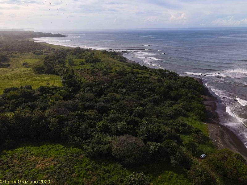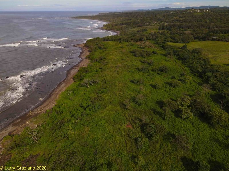 The property softly slopes up from the beach. It is wedged between two outcropping of rocks on the north and south ends of the property. Since the property was historically used for grazing cattle it will be easy to develop as there are very few trees.