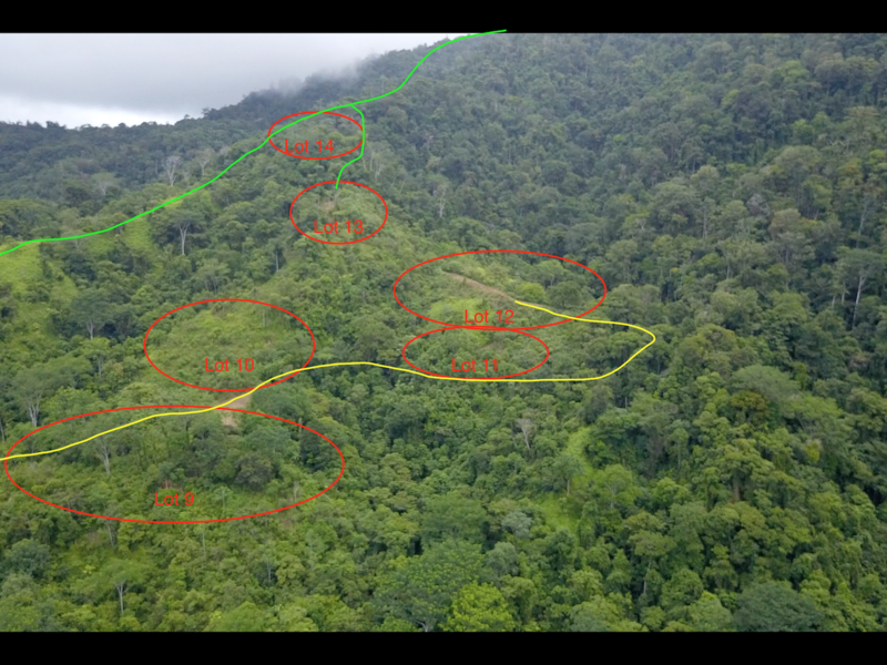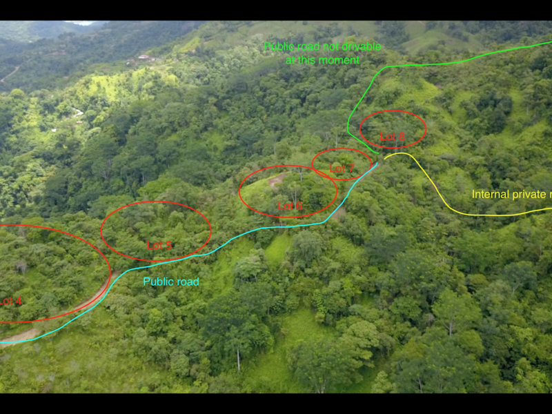 Lote 8 is located between the public road and the farm’s internal road (on the right of the public road and on the left of the internal road). It is not clean right now. the prepared building site estimated to be as big as 800m2 or 8,611 sq. Ft., no ocean view only mountain view. Access is from public road and, or internal road. Having public road frontage make it subdividable.
