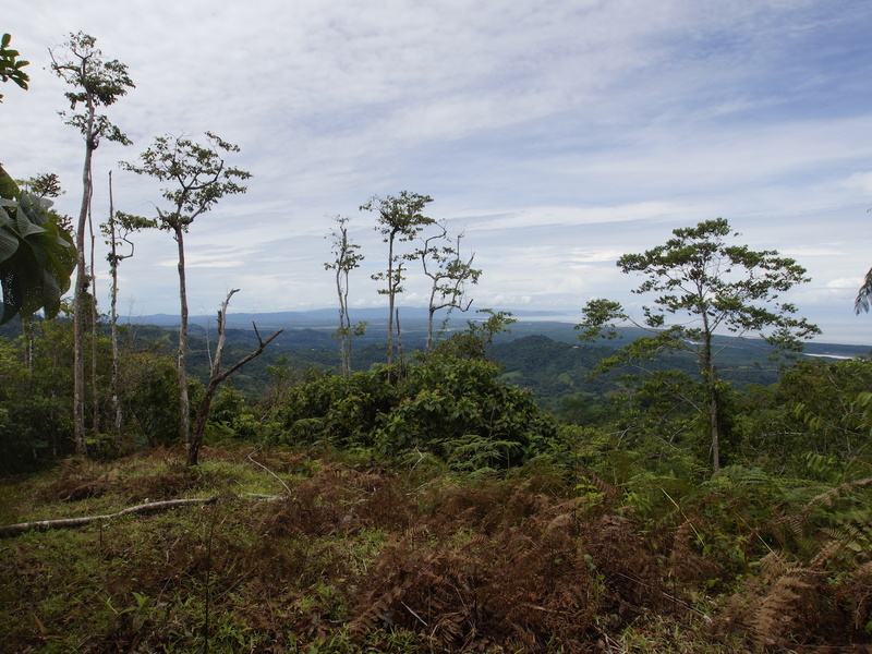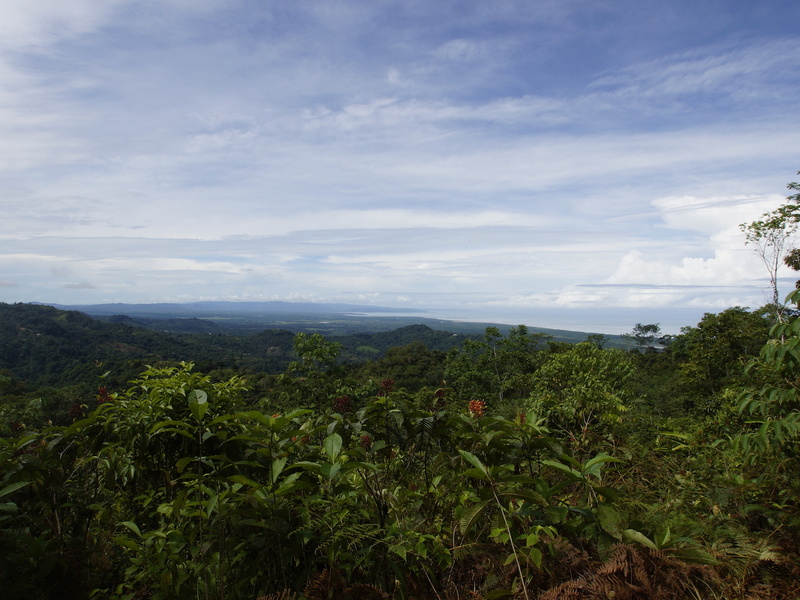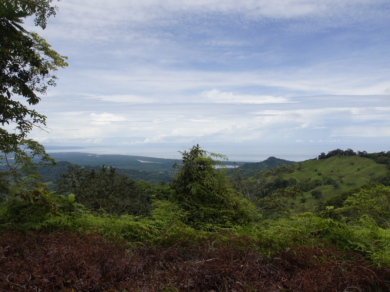 The lower third of the property provides valley and mountain views, the middle section gives ocean views looking west and south across the Terraba river to the Osa Peninsula and Drake Bay.